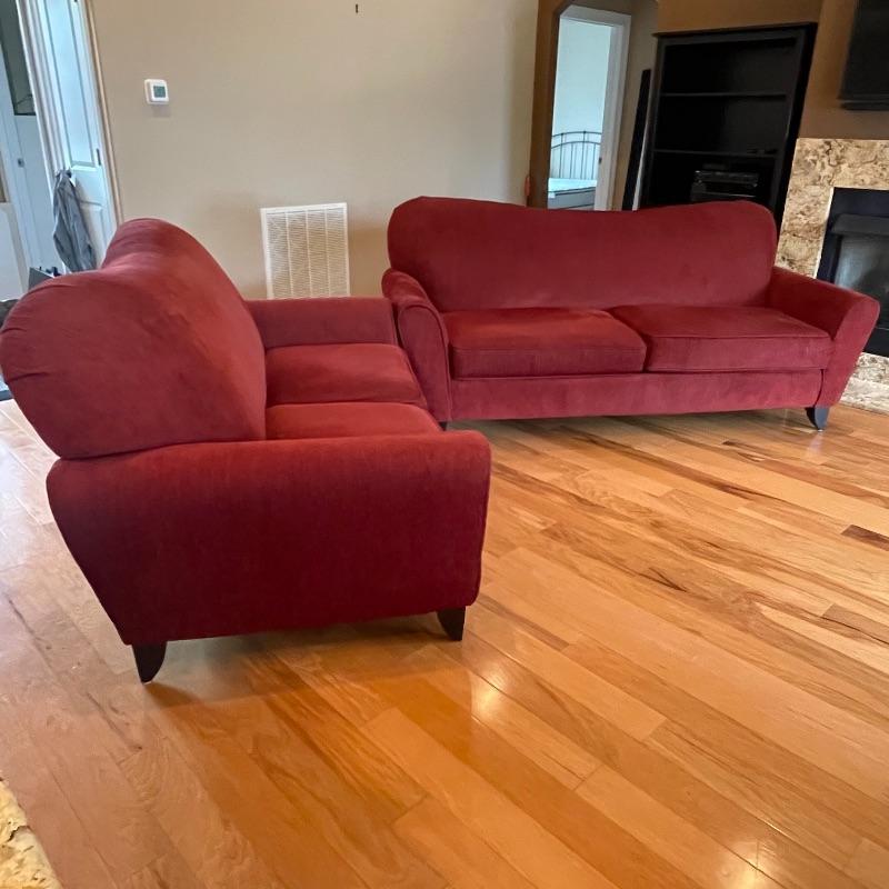 Rich Corduroy Merlot/Burgundy In Color /  Sofa With Matching Loveseat
