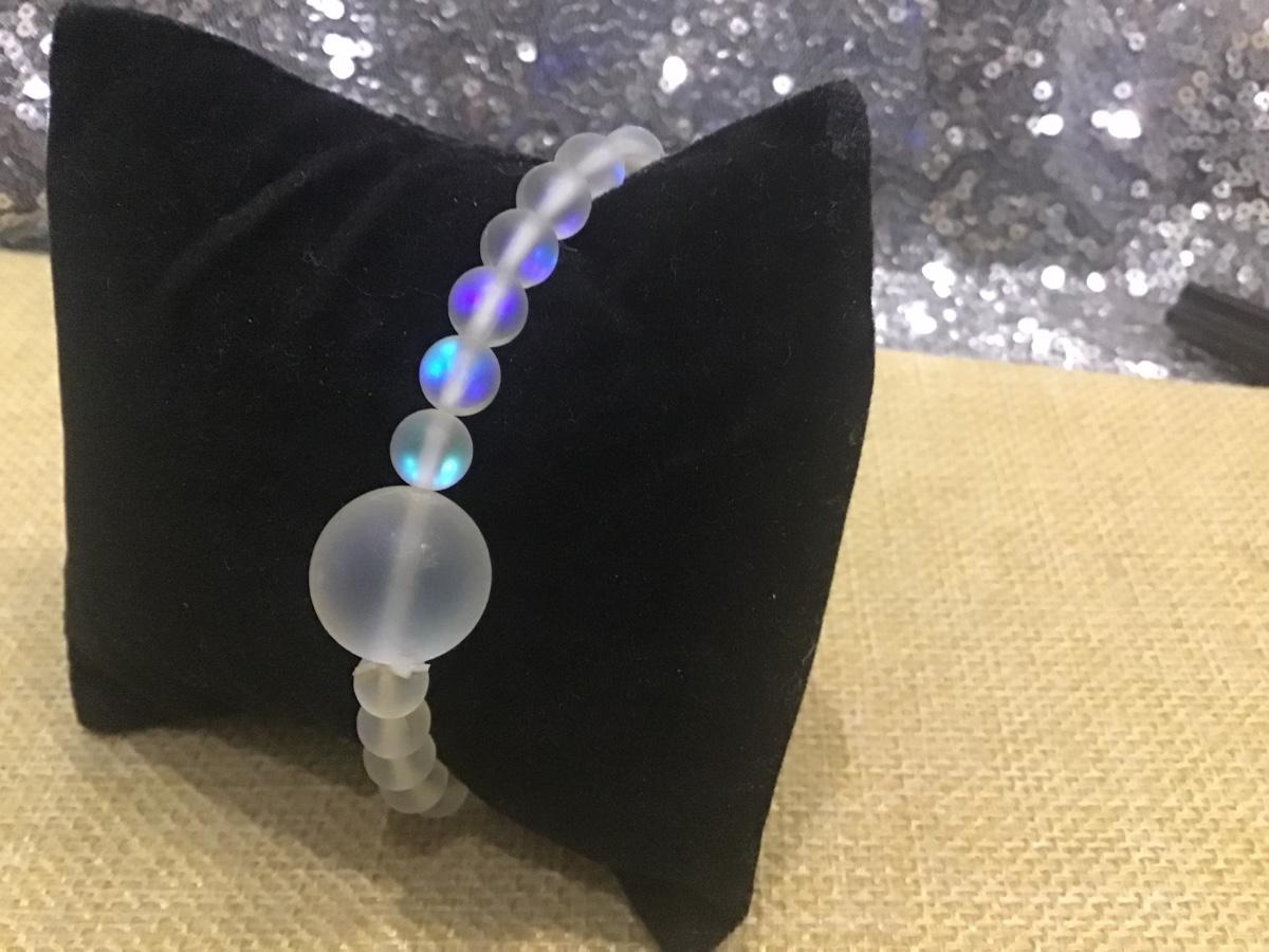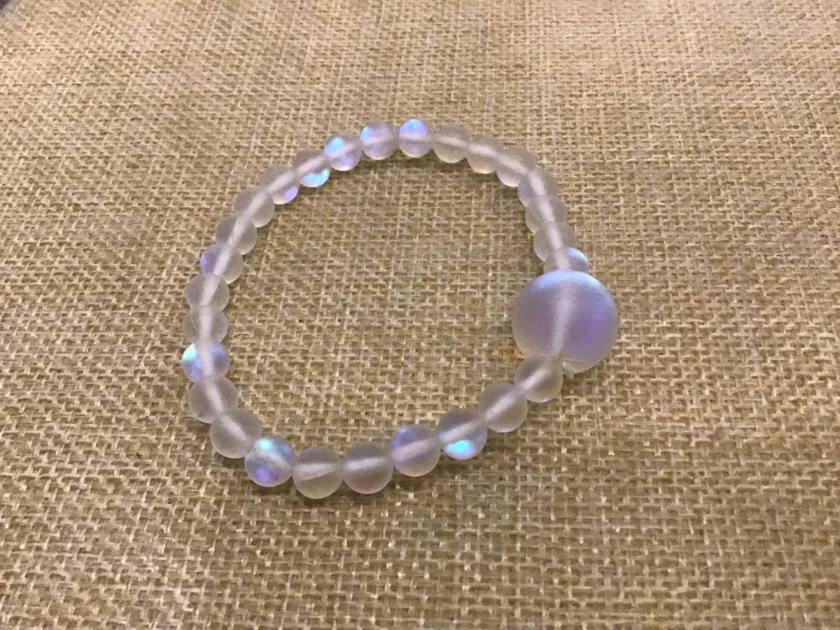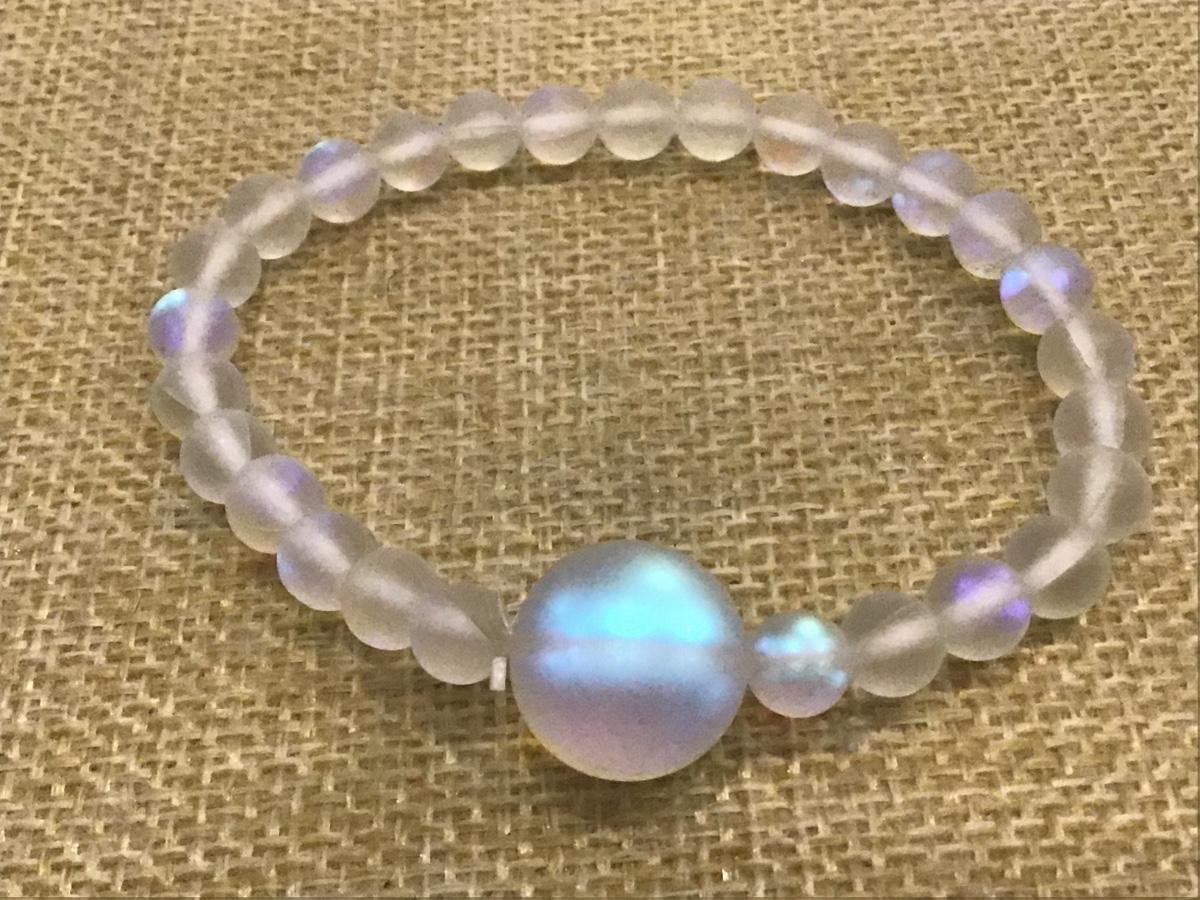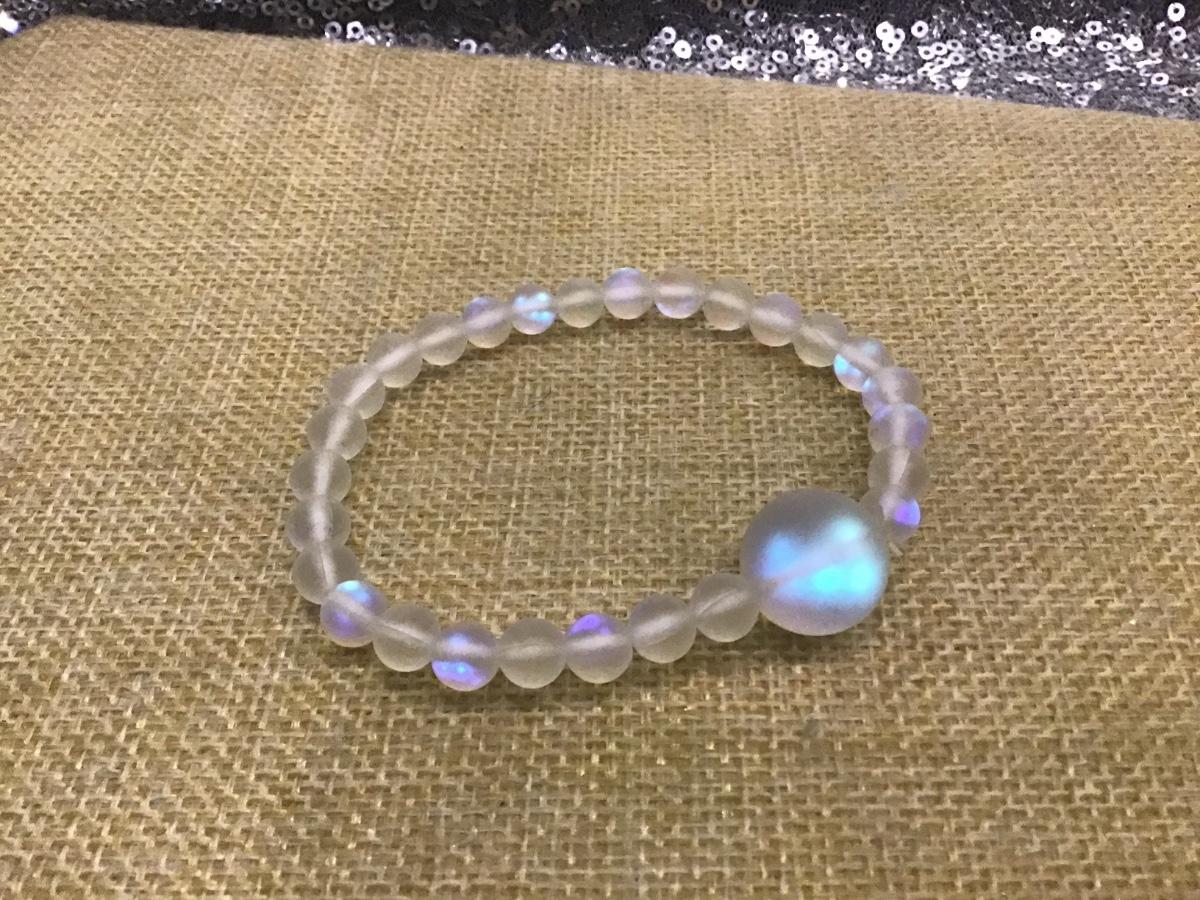 Mermaid Bracelet Iridescent Moonstone Rainbow Glass Bead Sparkly