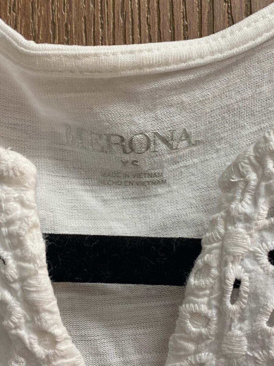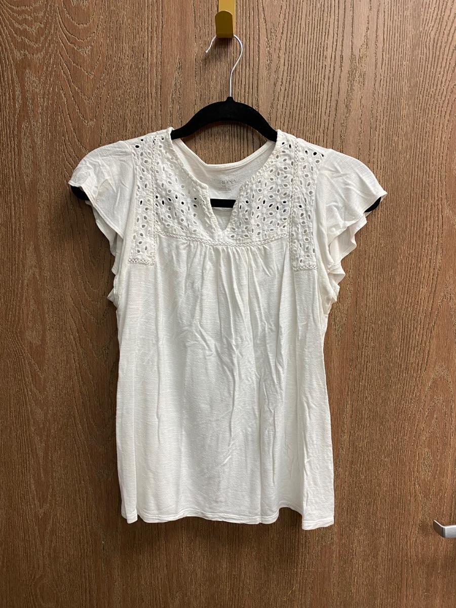 Merona white sleeveless blouse. Eyelet lace details. Faint yellowing at the armpit. Size Xsmall.