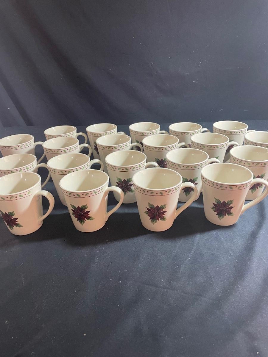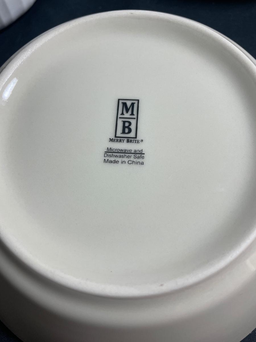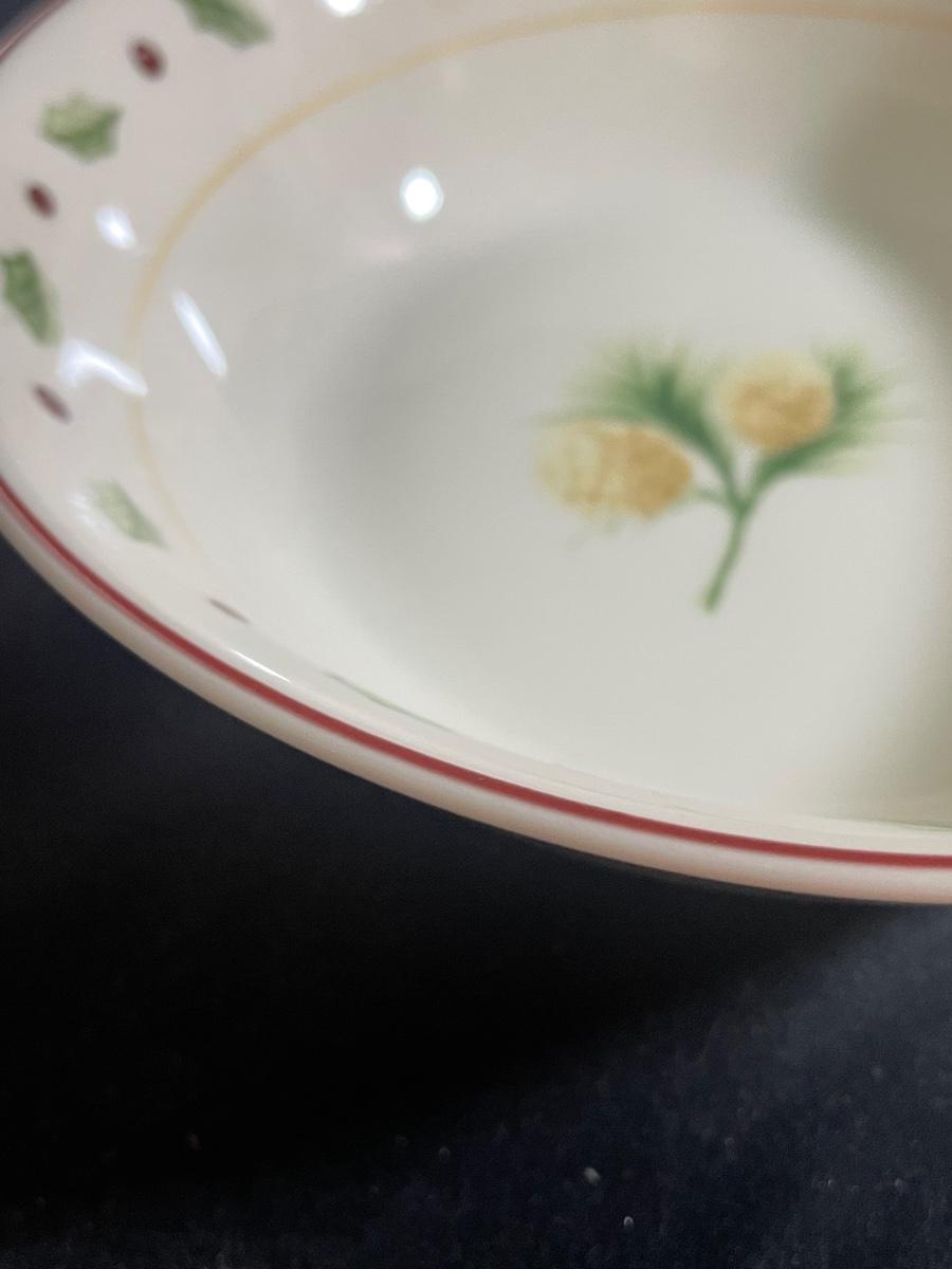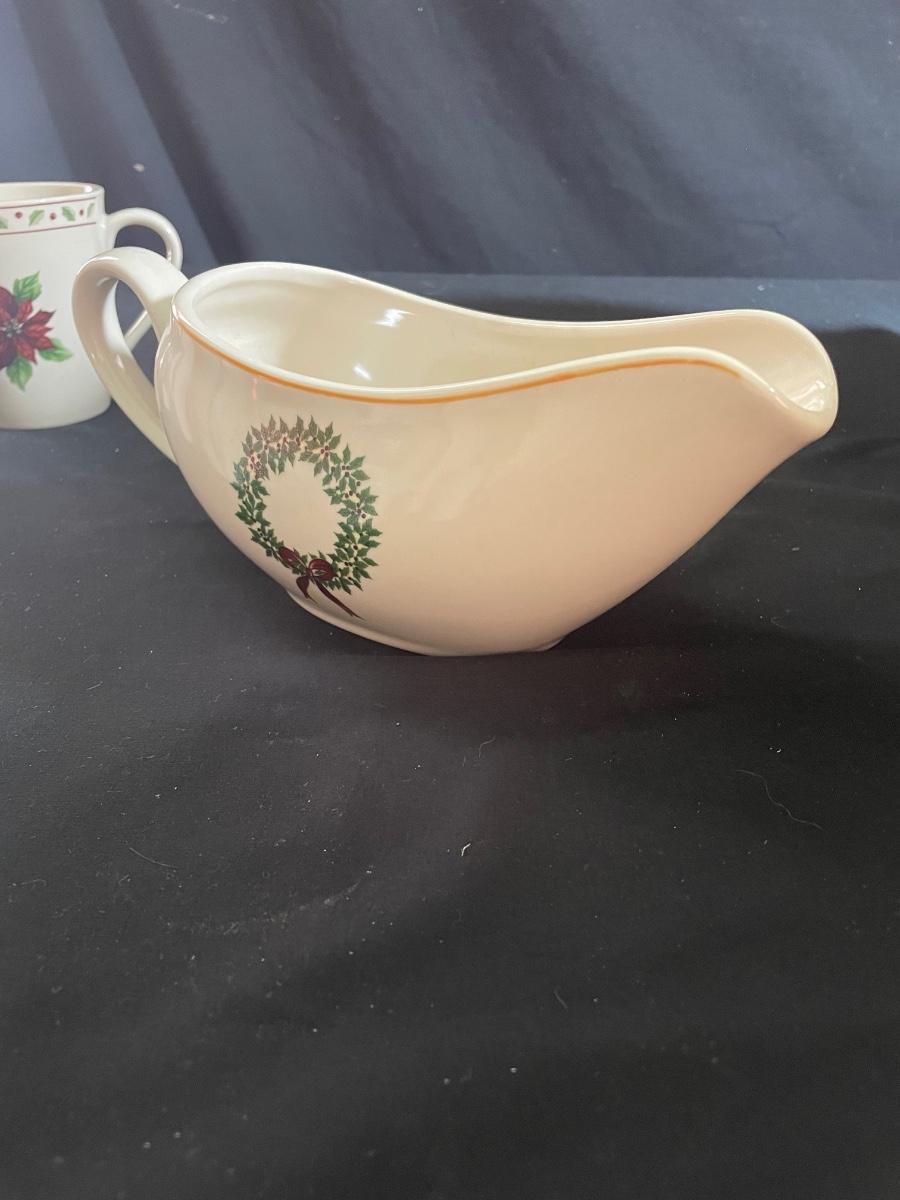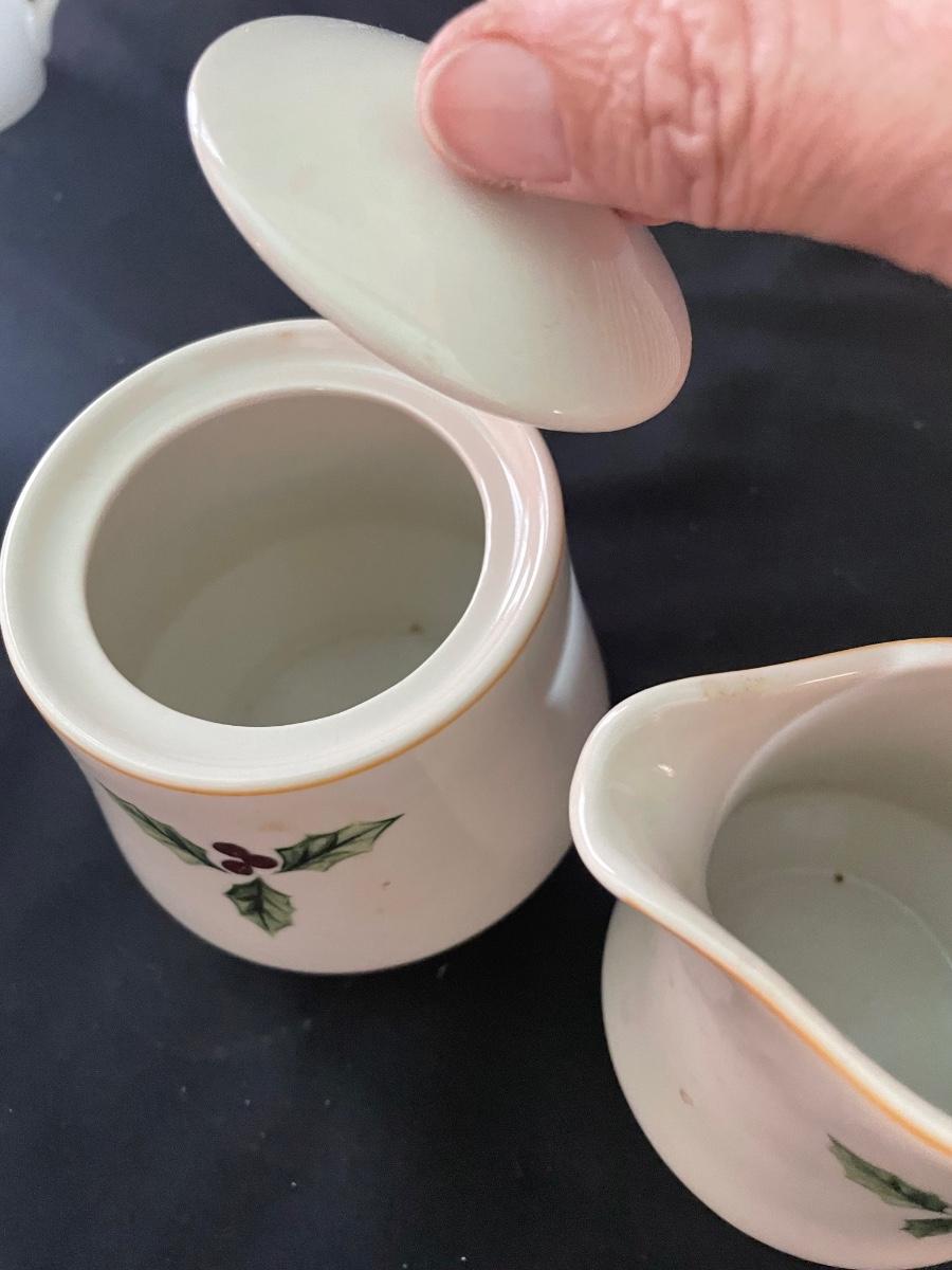 This 85 piece set of Merry Brite ceramic dinnerware would be a 20 person setting but one dinner plate is missing. This festive ceramic set includes 19 dinner plates that are 10.5” diameter and 20 each of side plates, bowls and cups. The collection also includes a platter, 2 large serving bowls, gravy boat, sugar bowl and creamer. All pieces are in excellent condition.