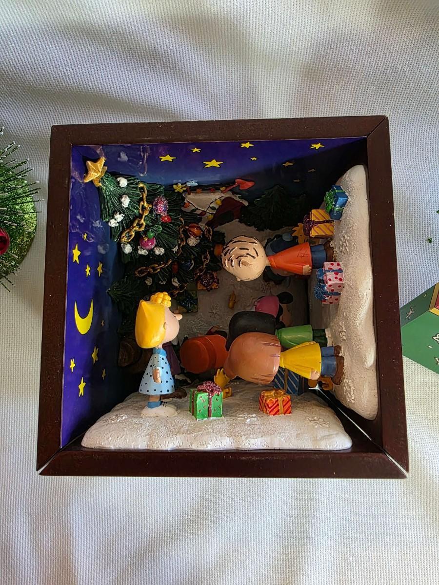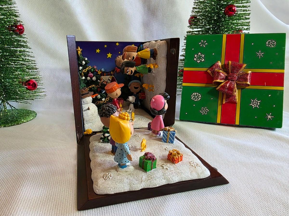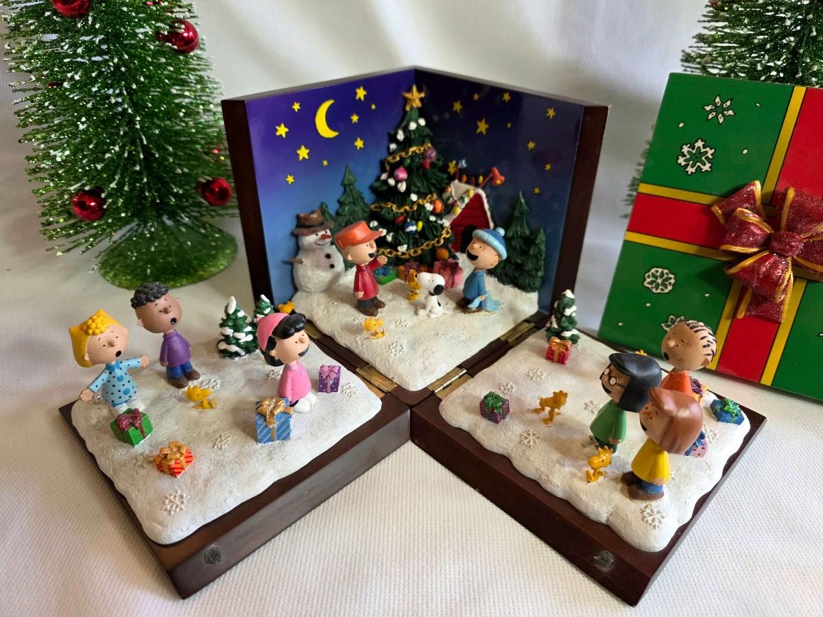 Danbury Mint, "Merry Christmas Charlie Brown!" This is a very rare item, with no others currently available and very few comps with sold prices for over $300. Two of the small Woodstocks broke during repackaging, but they were clean breaks and can probably be gorilla glued.