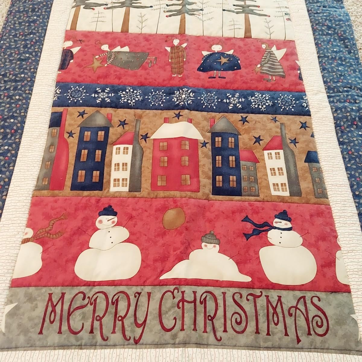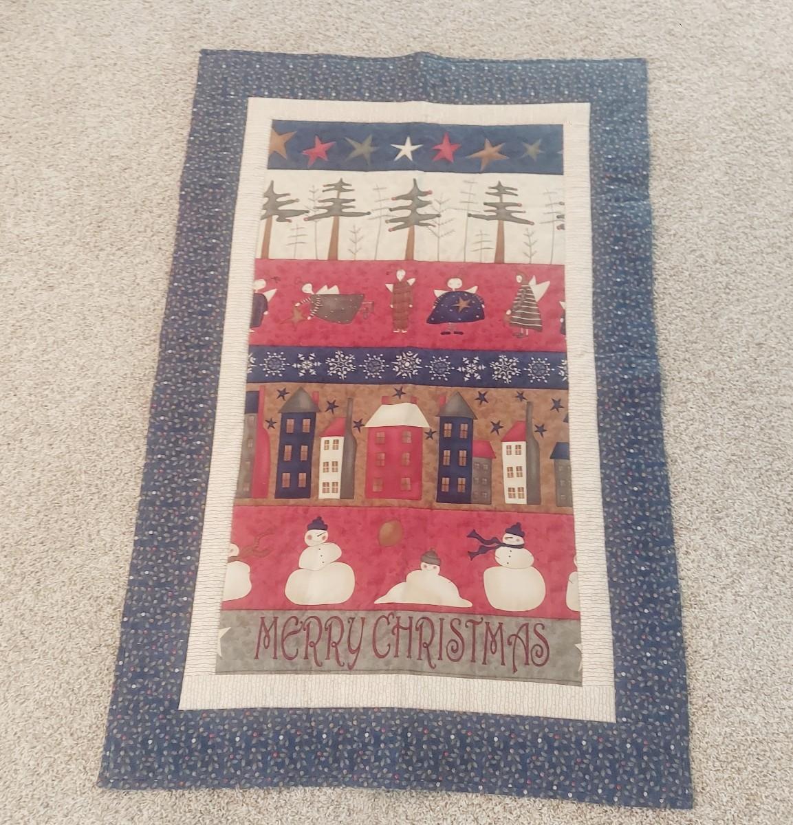 MERRY CHRISTMAS MACHINE STICHED QUITLED TAPESTRY