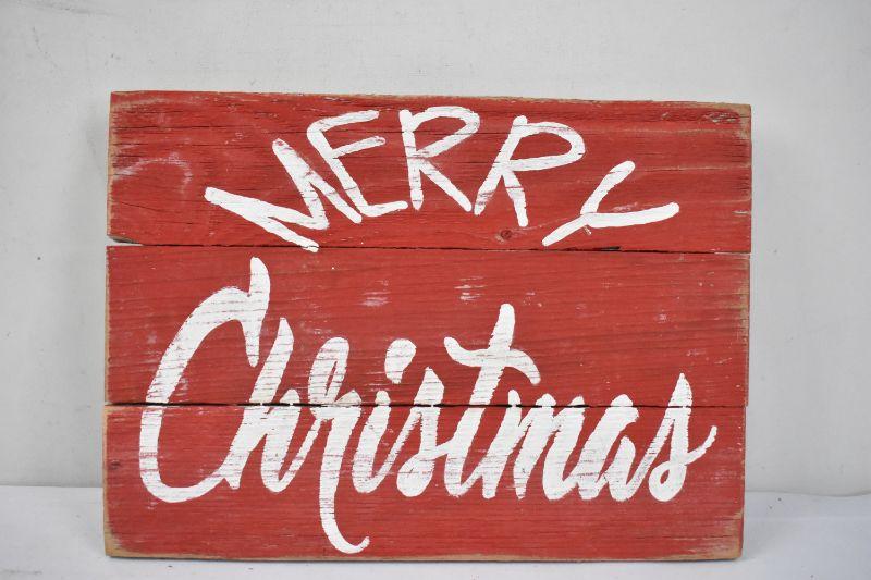 Merry Christmas Rustic Wooden Wall Decor Sign, Red & White 10" x 14"