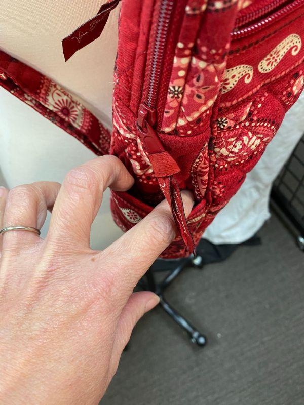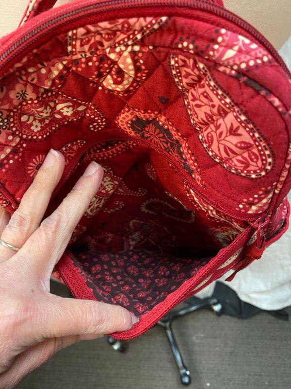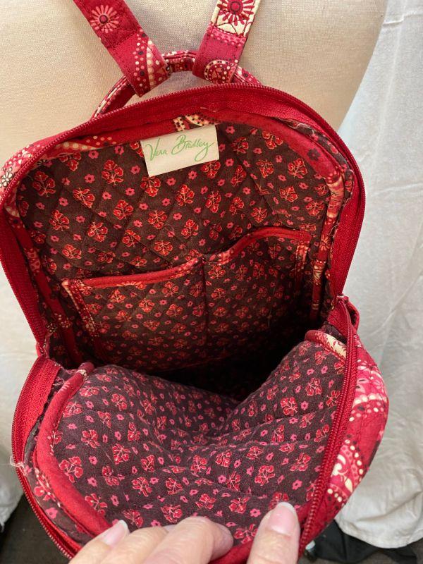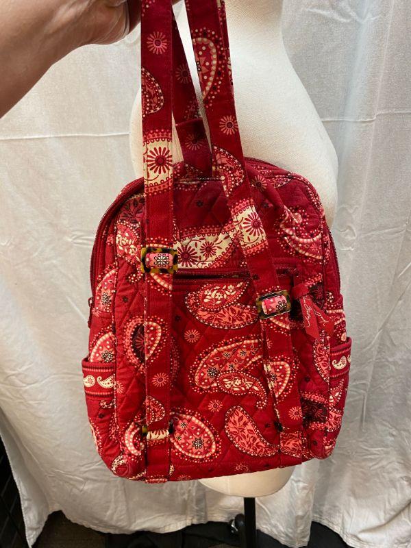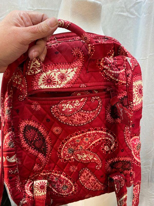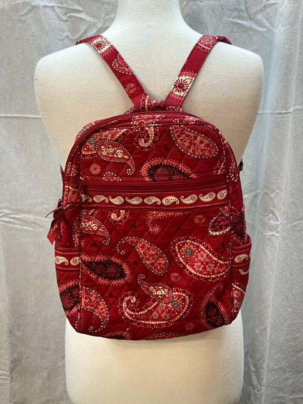 Vera Bradley quilted back pack. Mesa Red paisley design. Multiple inside and outside pockets. Small size, but not a mini. Good condition. Adjustable shoulder straps.