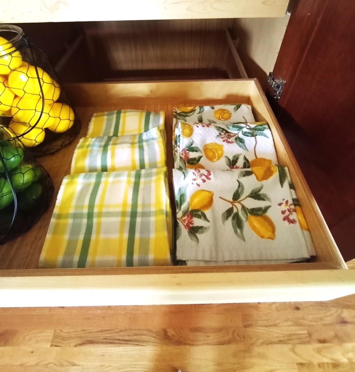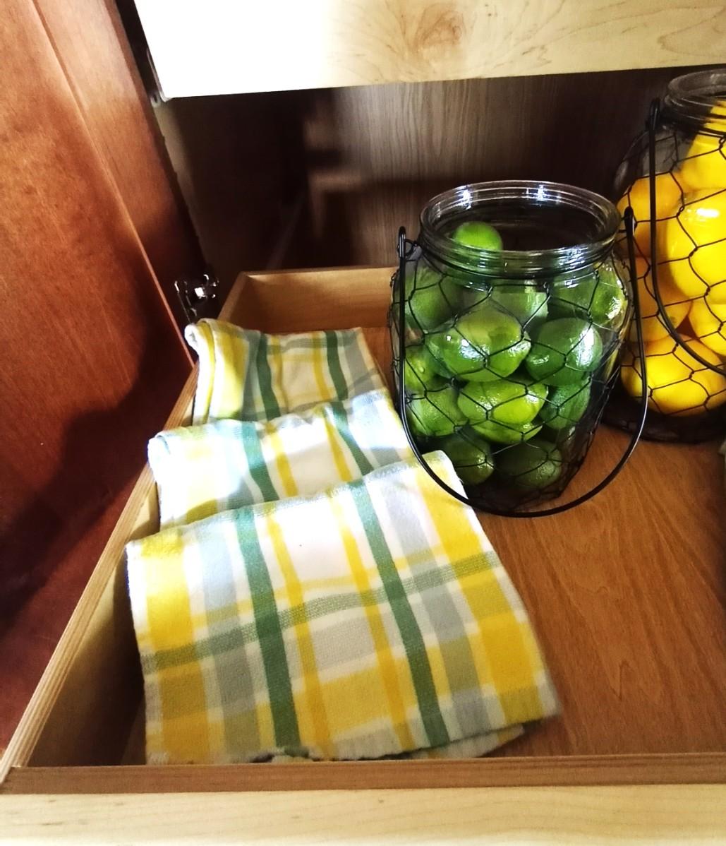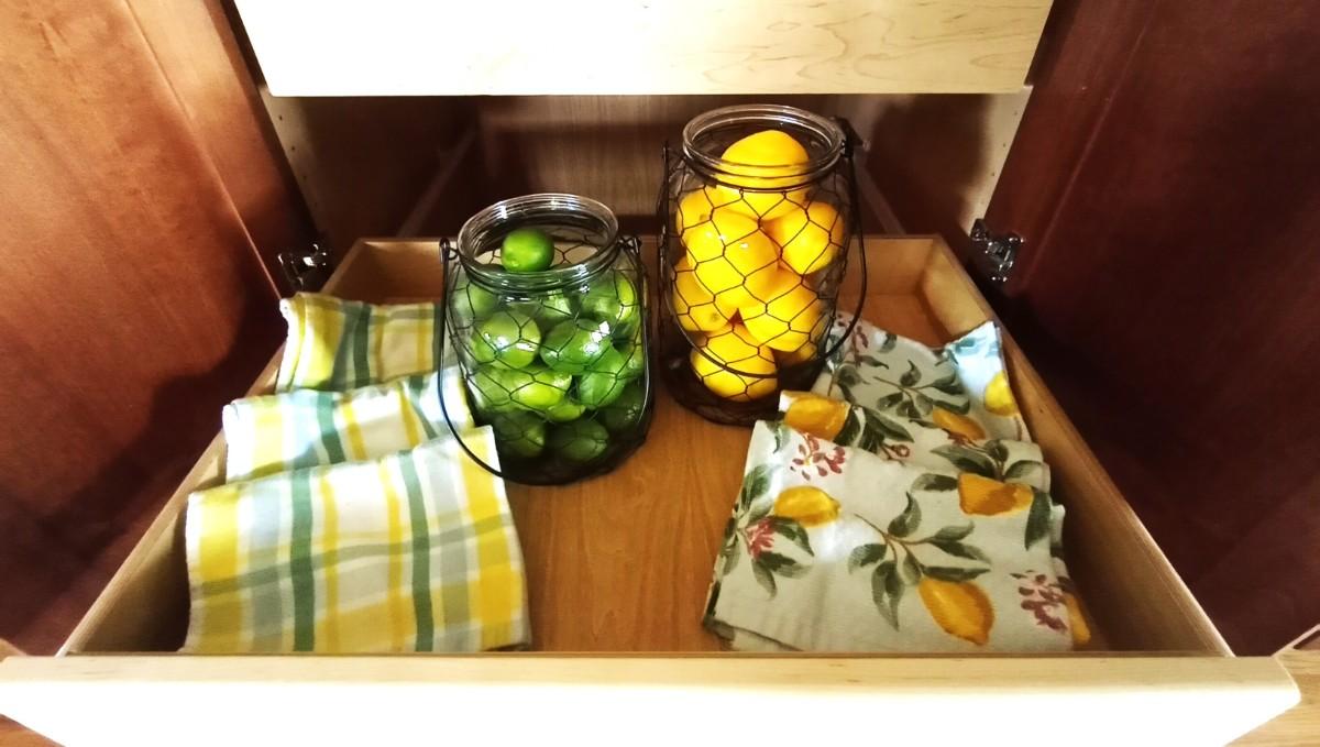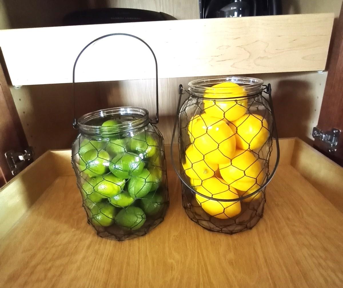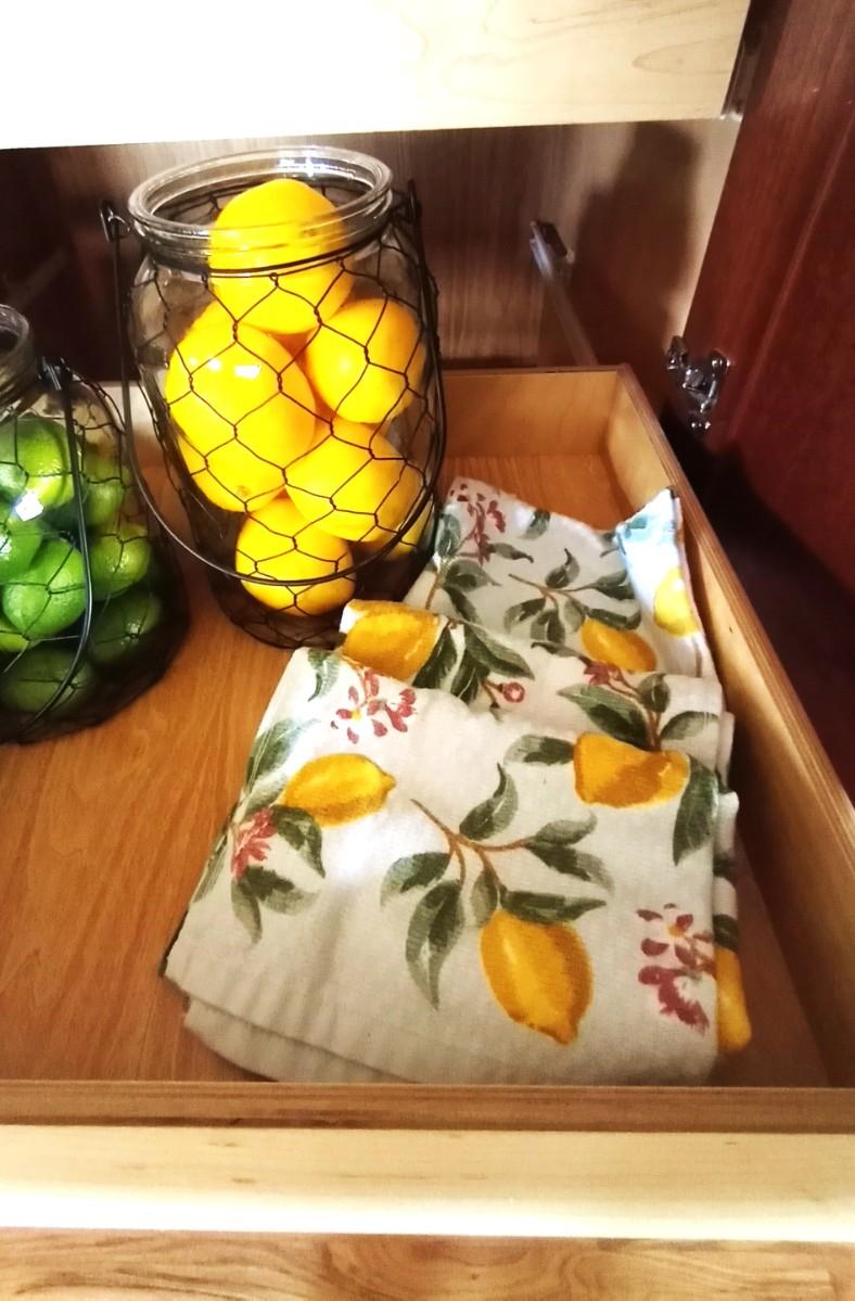 MESH METAL BASKETS 10" TALL WITH LEMONS & LIMES AND SIX LIKE NEW DISH TOWELS