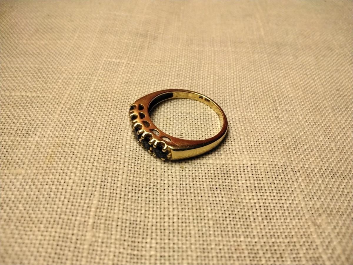 These are the most beautiful sapphires I have ever seen, I can't stop staring at them. This is not usually my style of ring but the sapphires are incredible! Once we had them cleaned up they are majestic! Such a gorgeous royal blue. 5 - 3mm Round blue sapphires. 14k solid yellow gold. Immaculate condition.