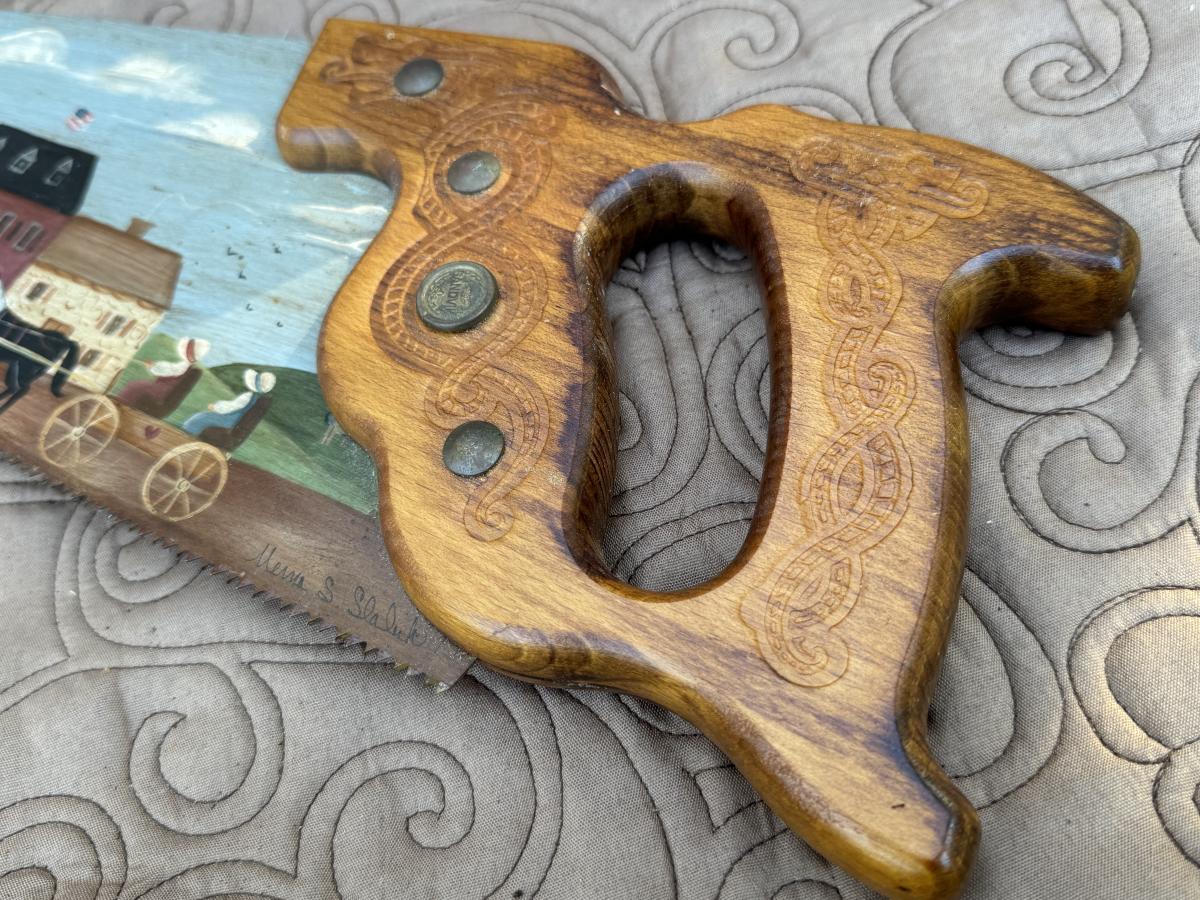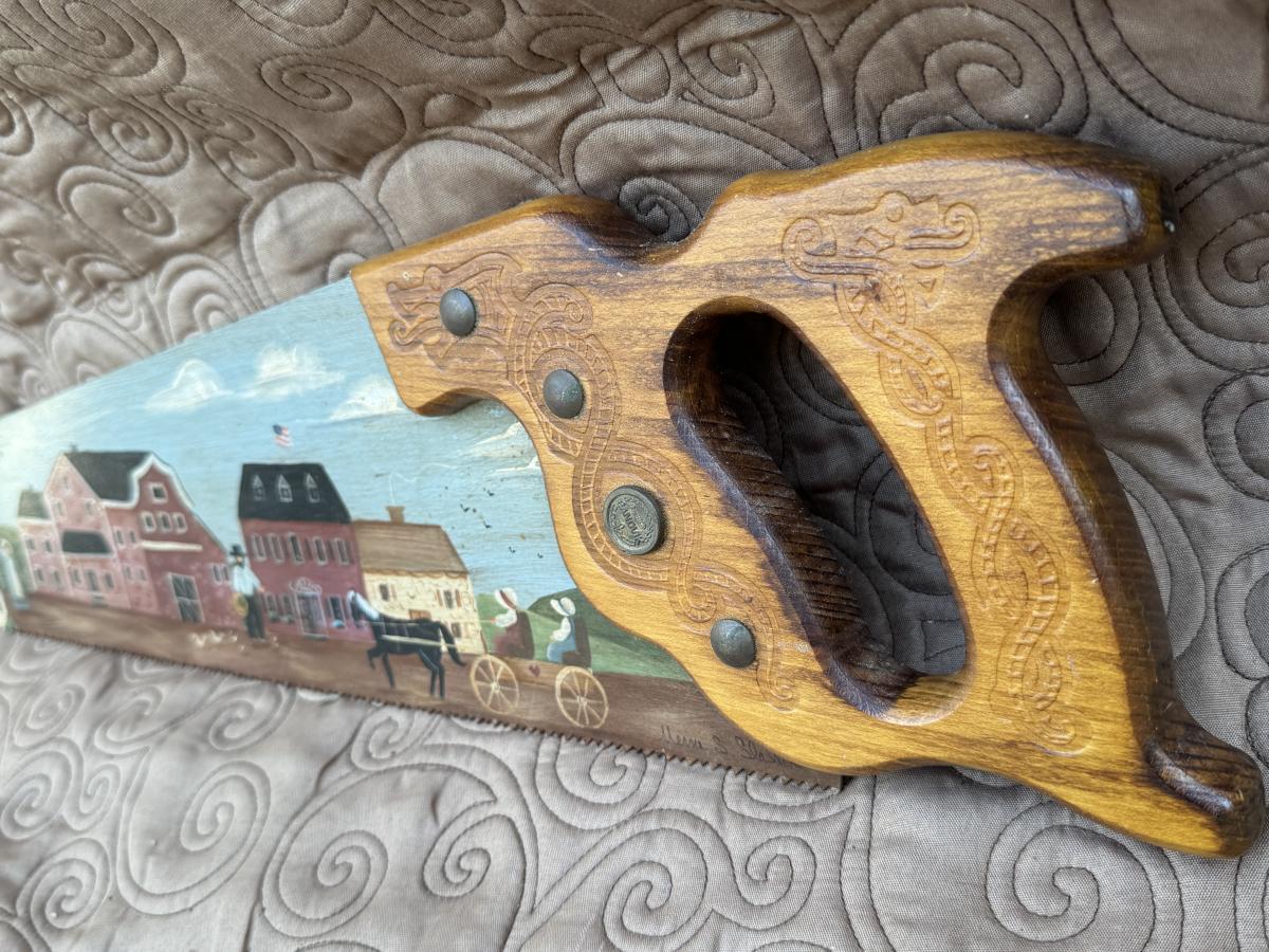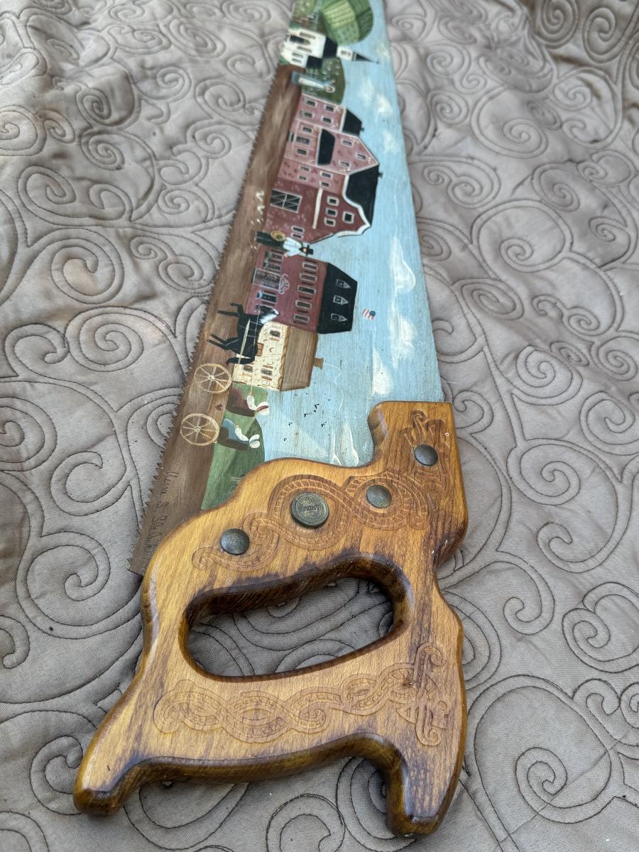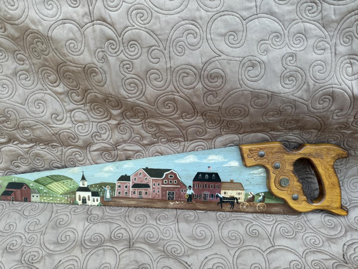 Vintage Sandvik Saw Hand Painted Street Scene by Merna S. Slabik