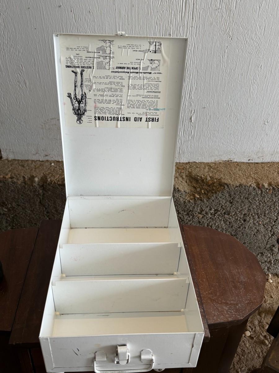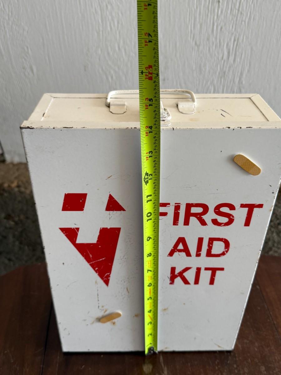 Metal First Aid Box: A sturdy metal first aid box, perfect for display or functional use. Its rustic charm evokes memories of simpler times when such essentials were a staple in every home.