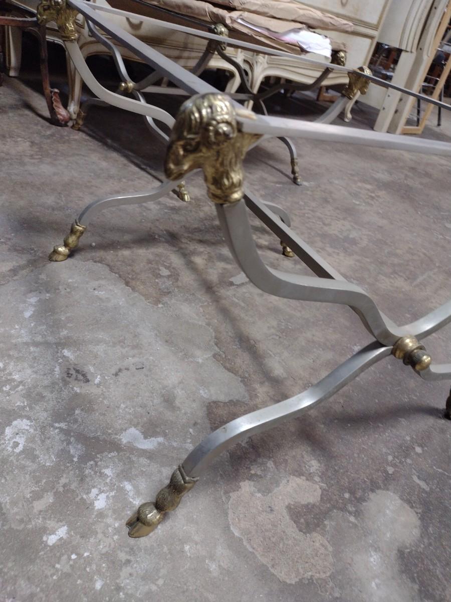 Mid Century Metal Framed Ram's Head Decor Side Table