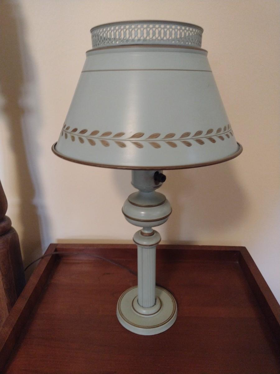 Vintage Metal Base and Shade Tole Lamp