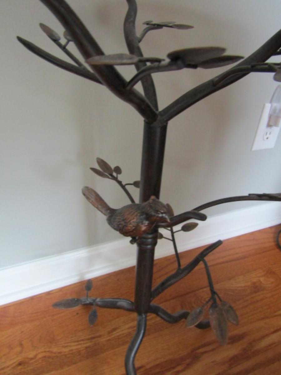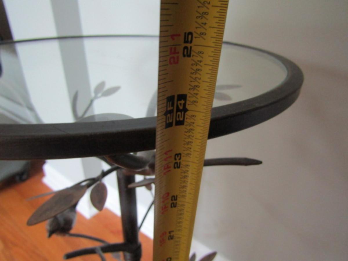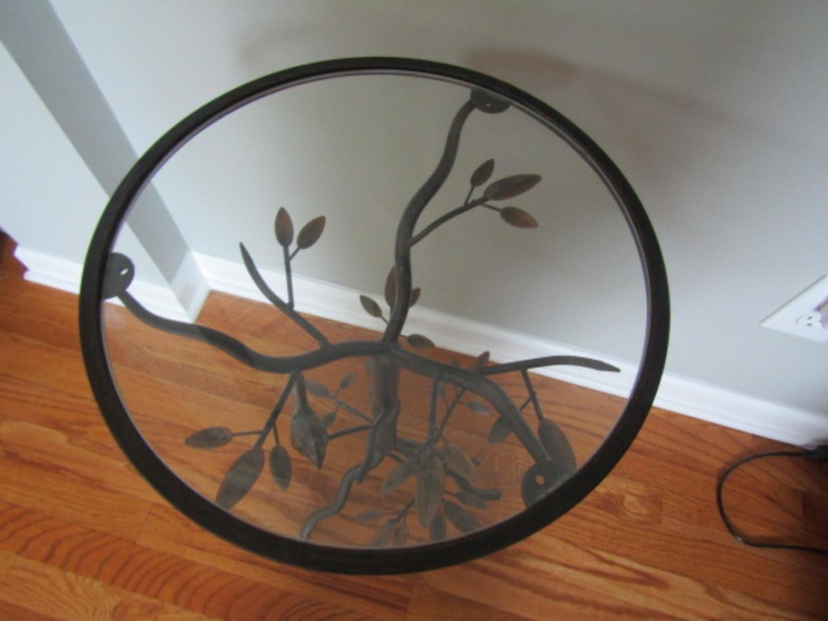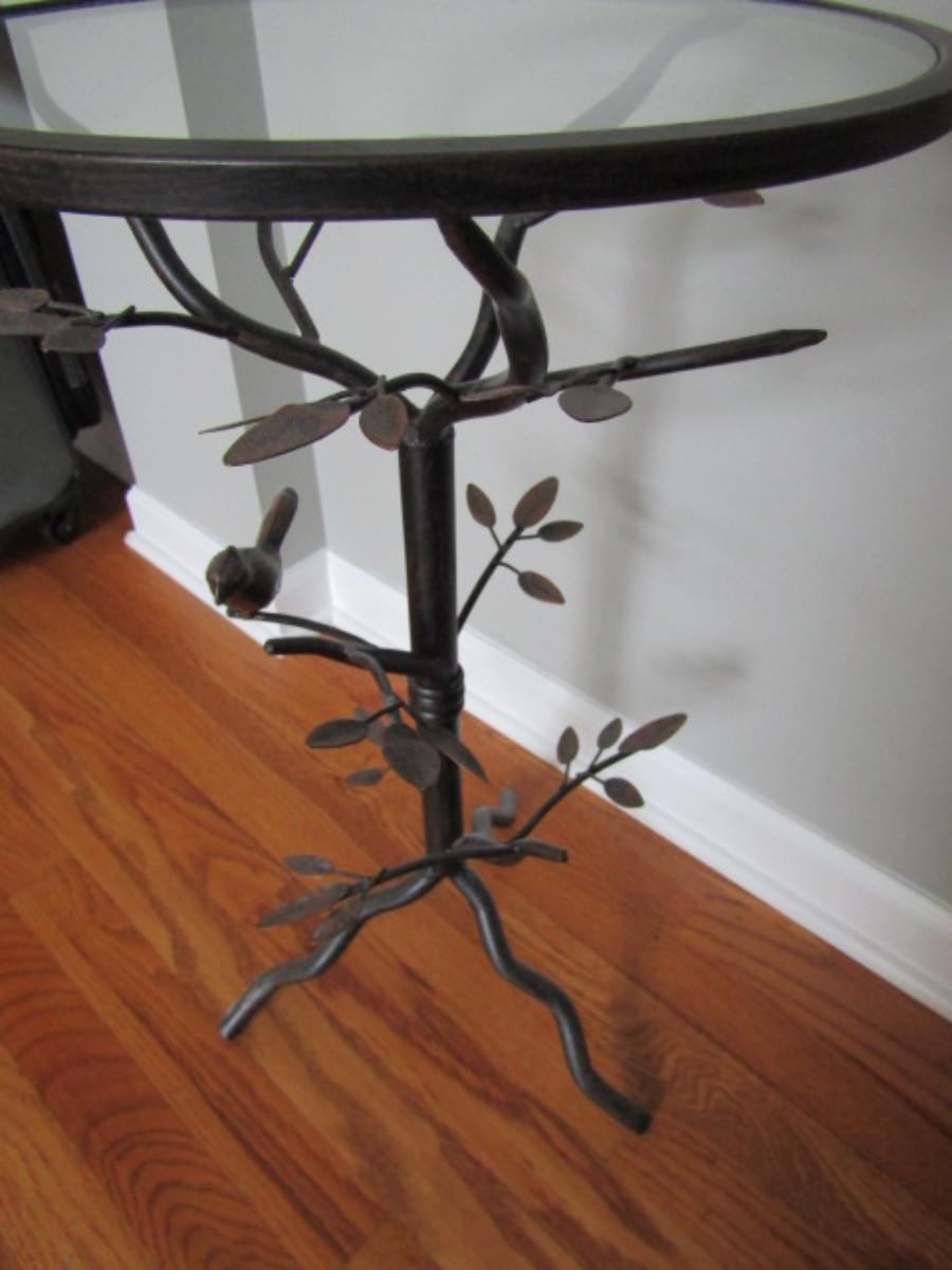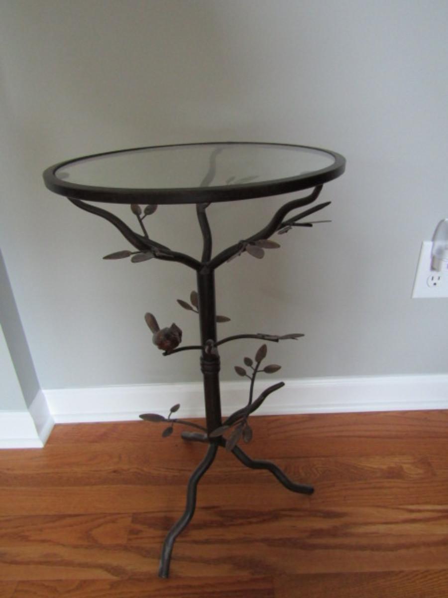 Metal Accent Table with Glass Top- Bird on Branch Theme