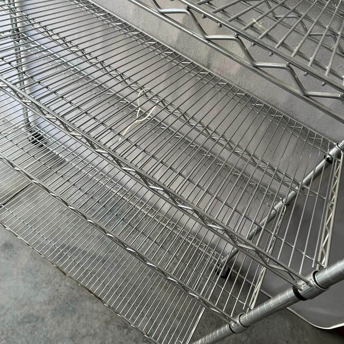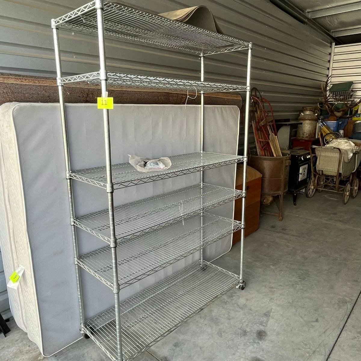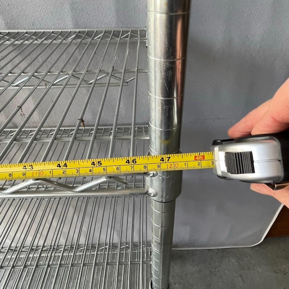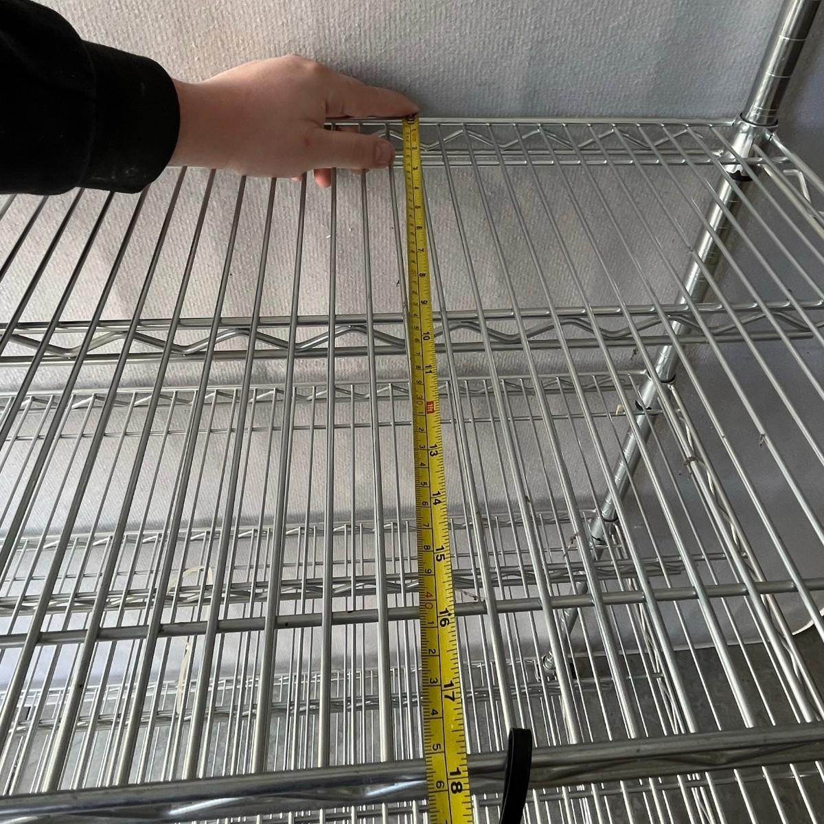 Approximately 4' wide x 20" deep x 6' tall. Includes shelf liners and a few extra parts