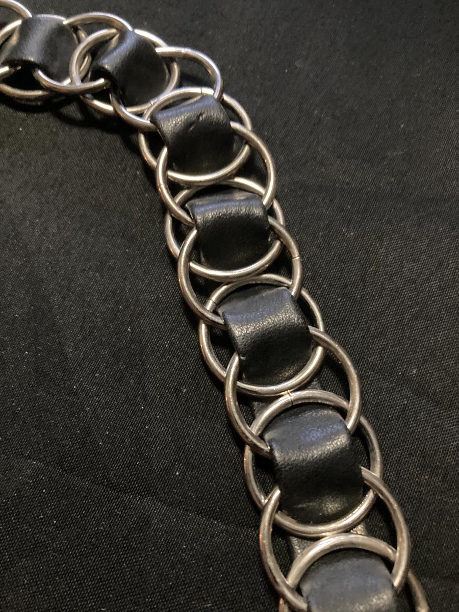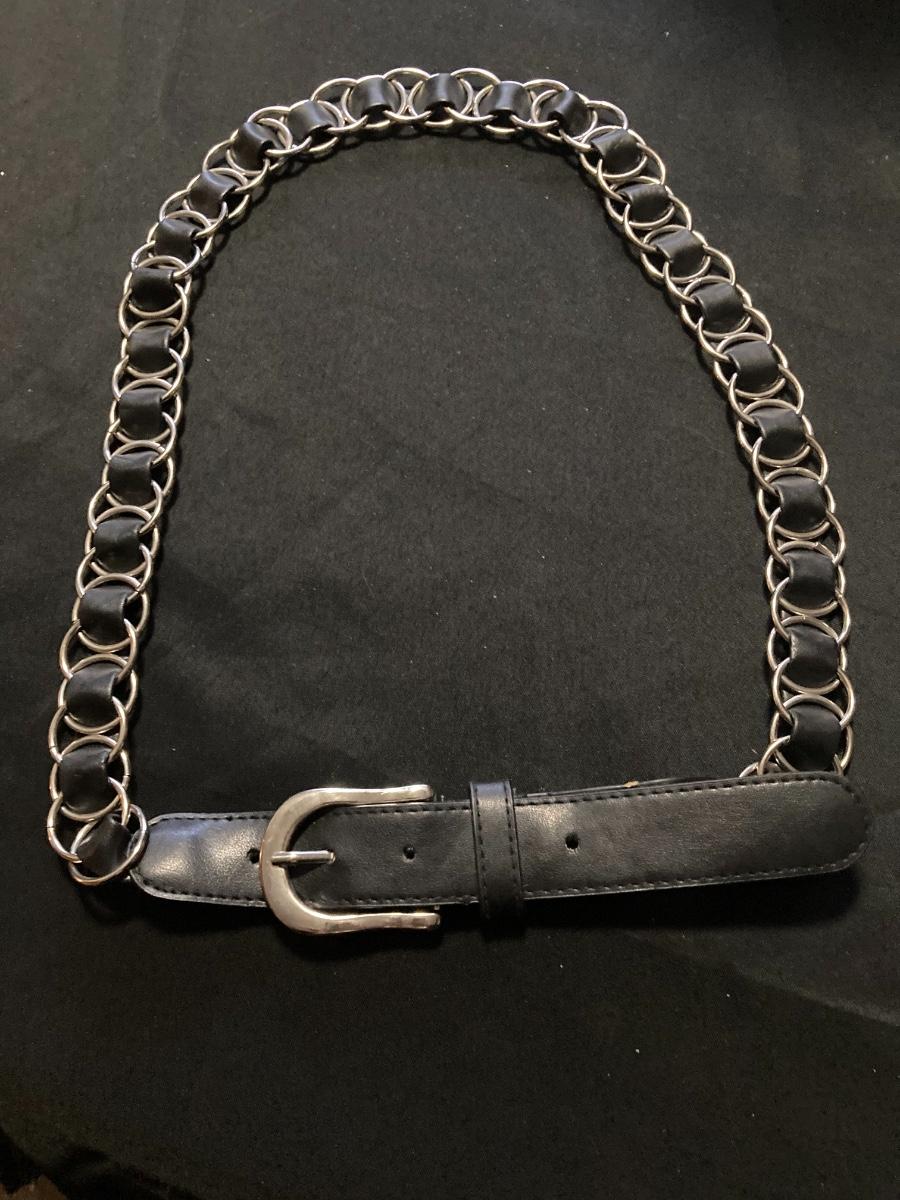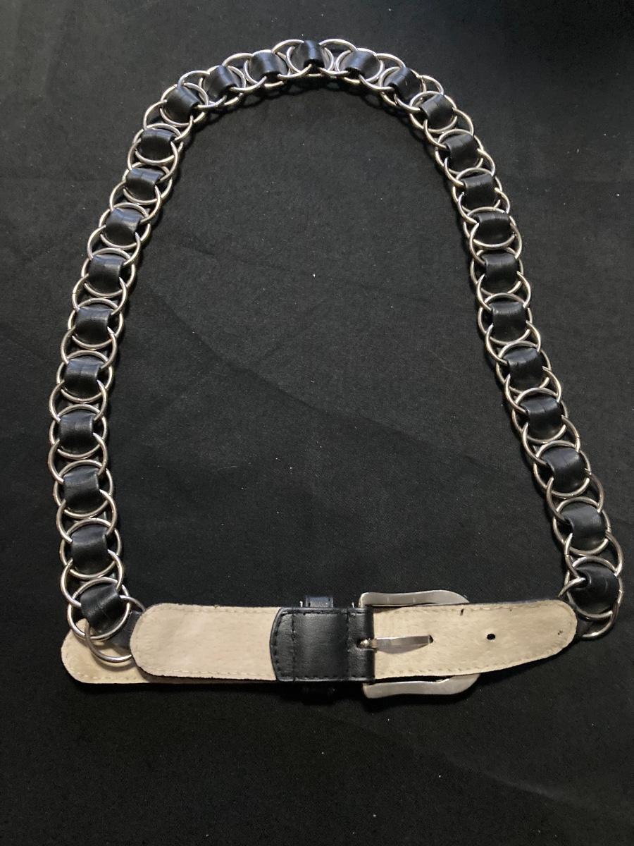 Metal and Black Leather Designer Belt 30”