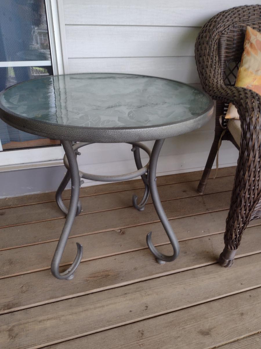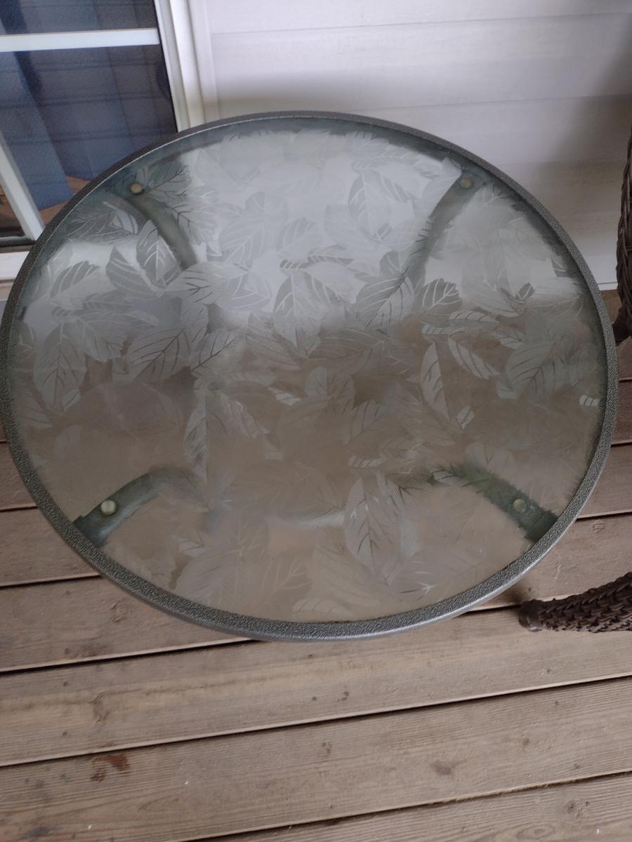 Metal and Etched Glass Side Table- Approx 26" in Diameter