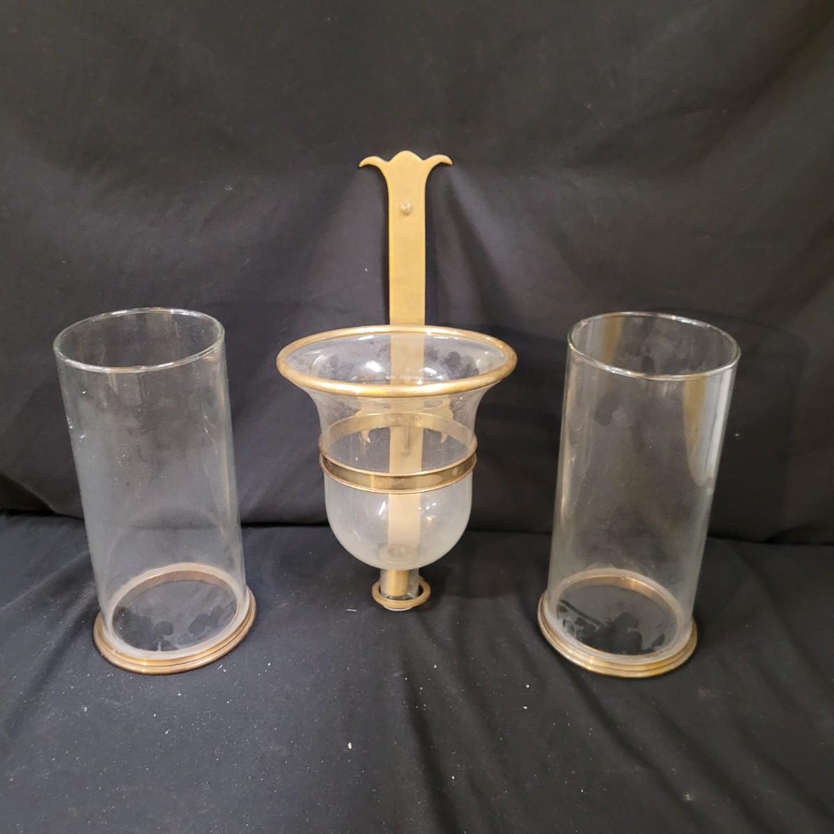 Metal and Glass Candle Sconce and Two Hurricane Globes (C-D-CE)