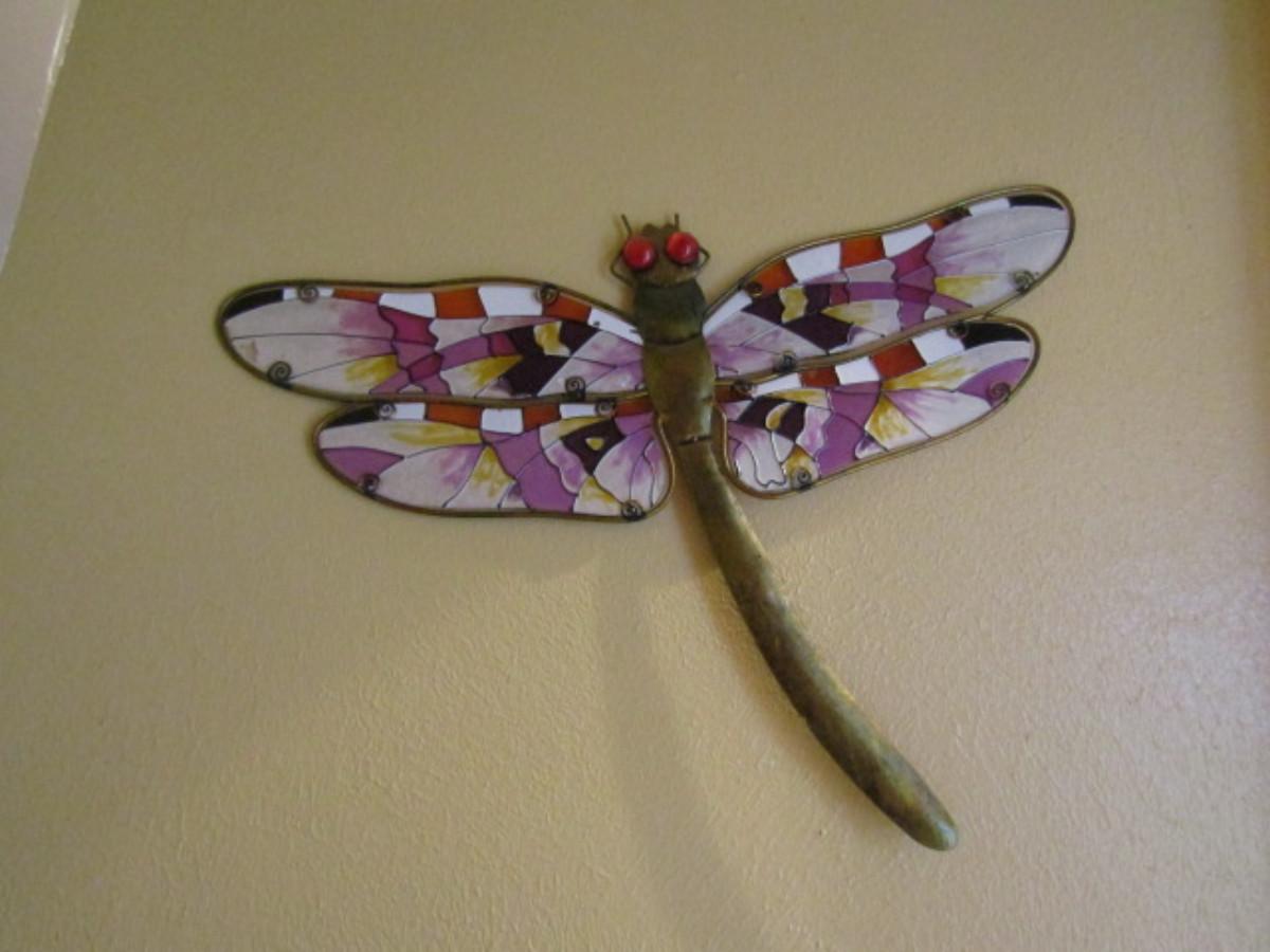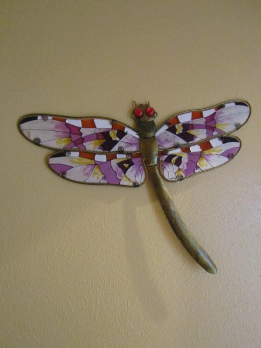 Metal and Glass Dragonfly Wall Decoration