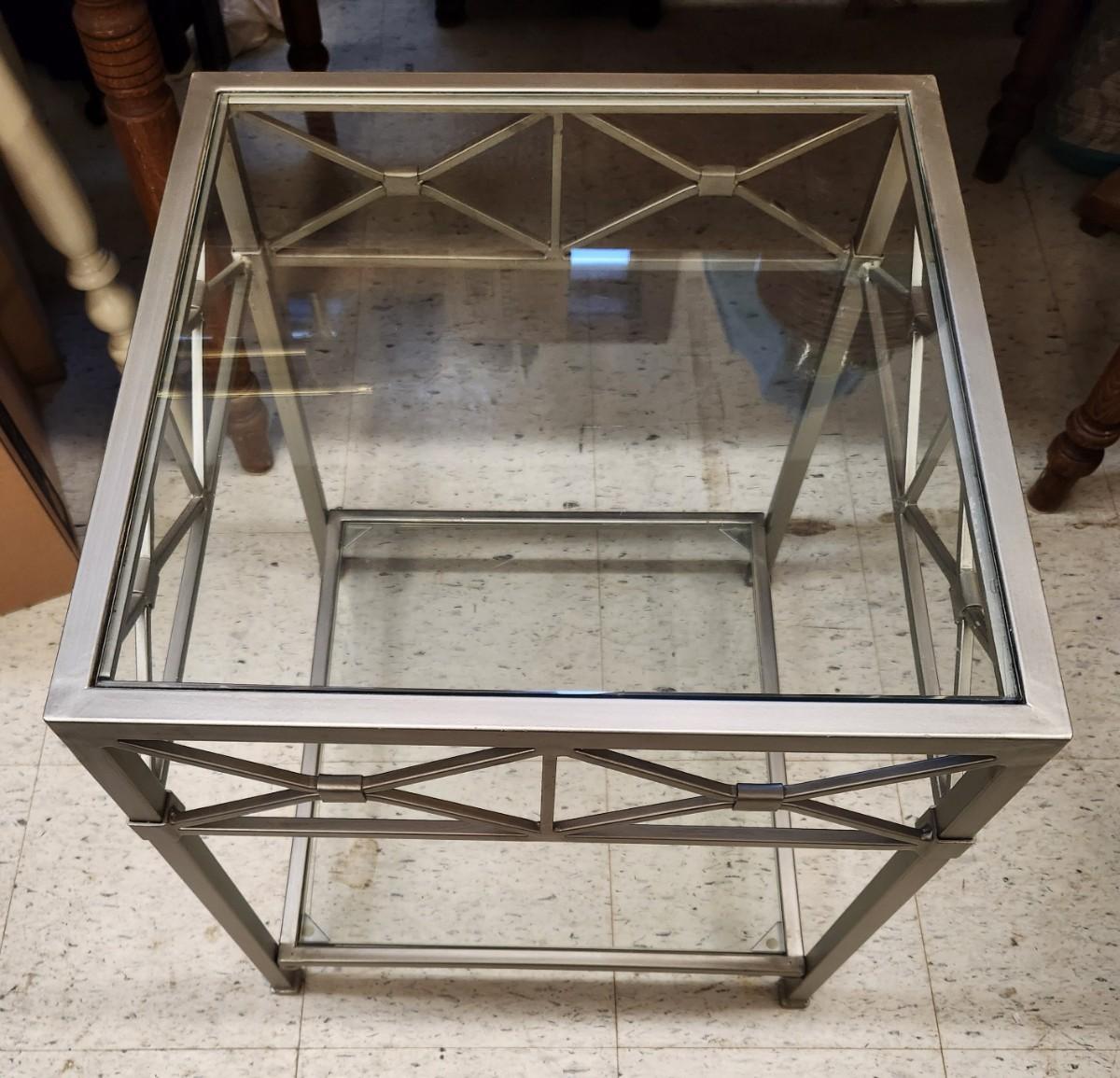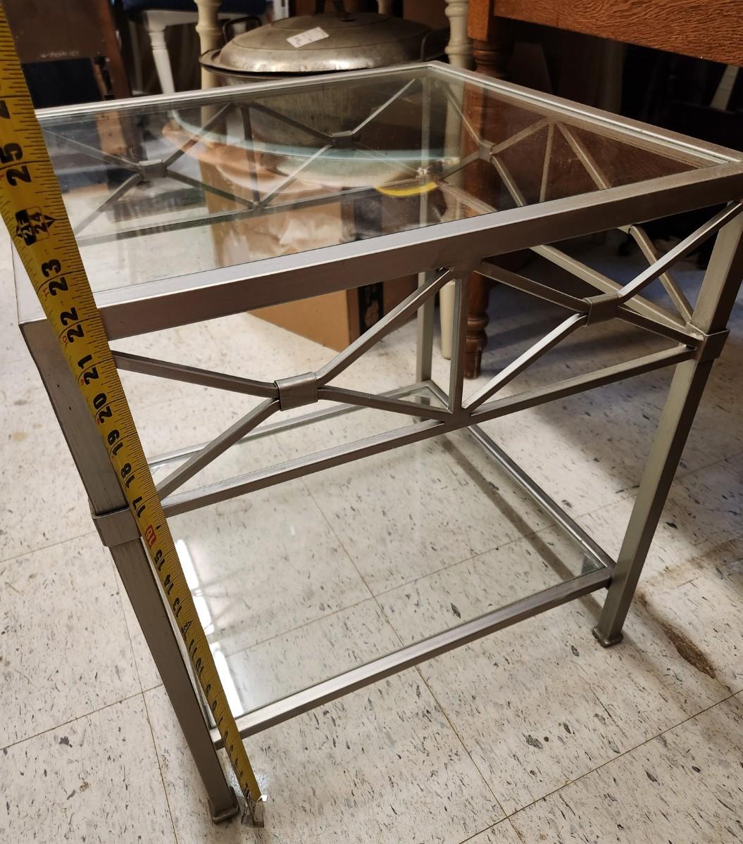 One single endtable. Glass on top and shelf in excellent condition. Dimensions in pictures