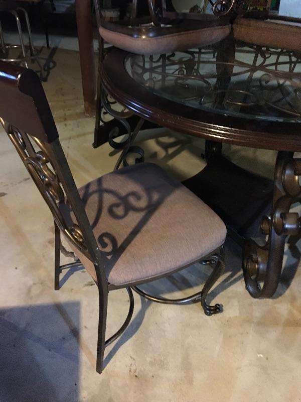 Metal and Glass Table and 4 Chairs Set