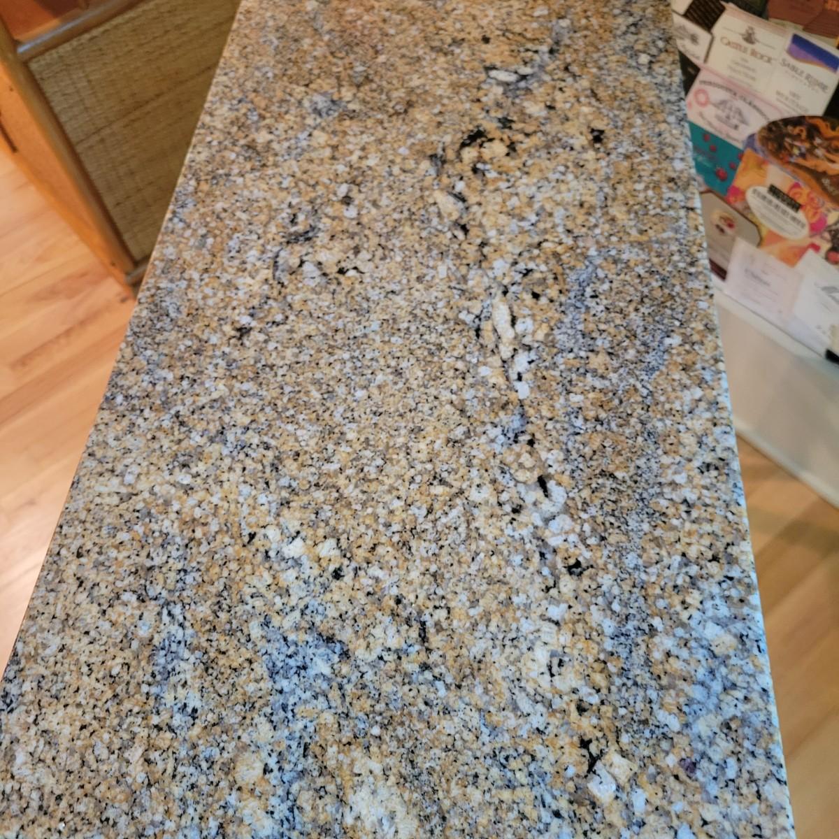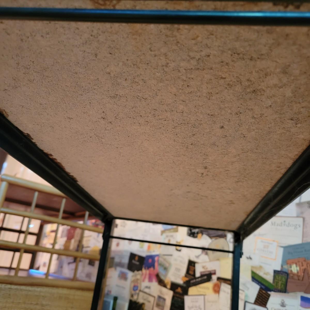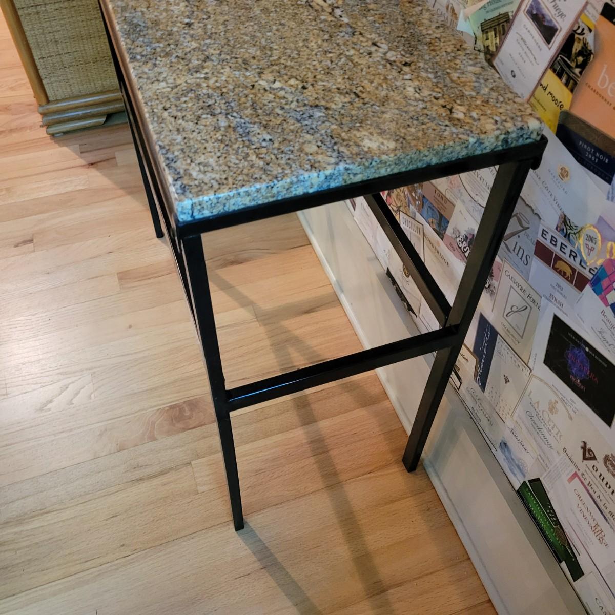 A small granite and metal accent table. This table has a black metal frame with thick granite top and measures approximately 27" x 12.5" x 26.5"H. Local pickup only