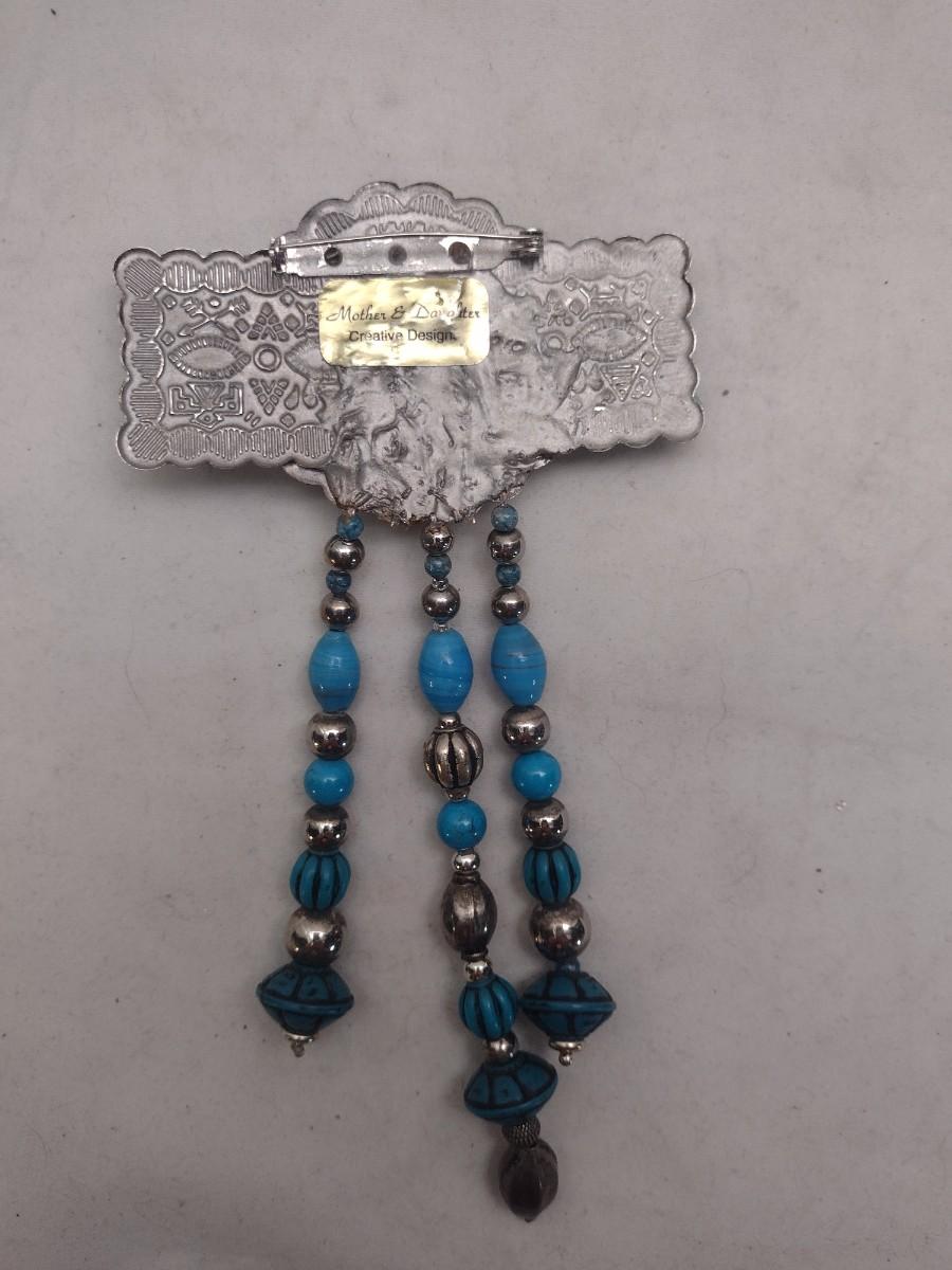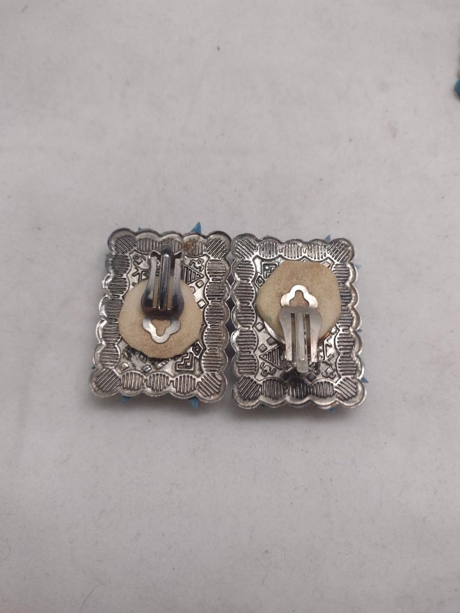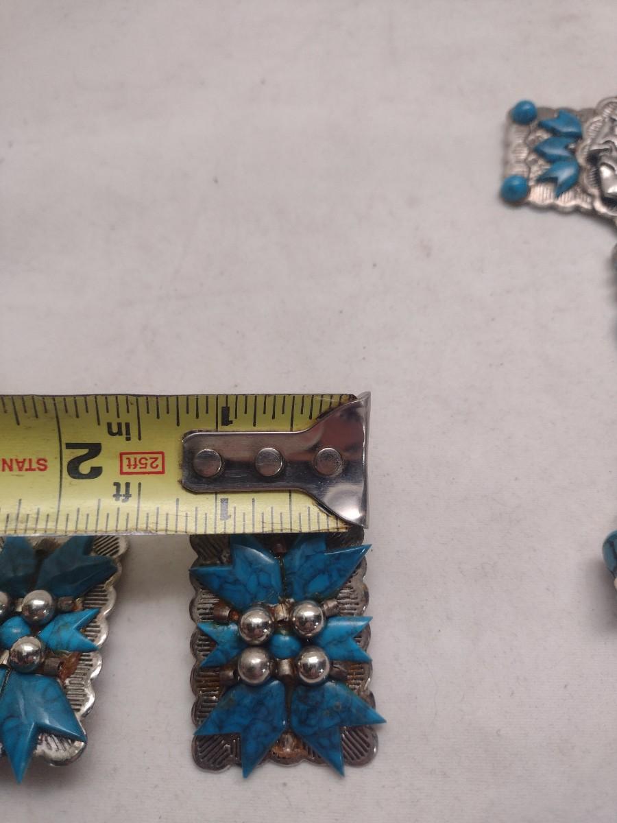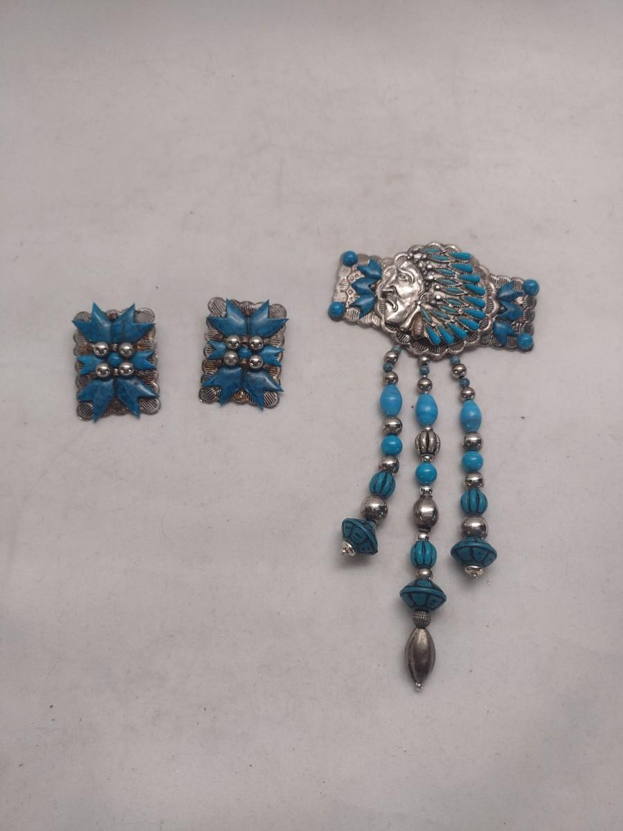 Metal and Turquoise Brooch and Earring Set (#36). Earrings are clip-on.