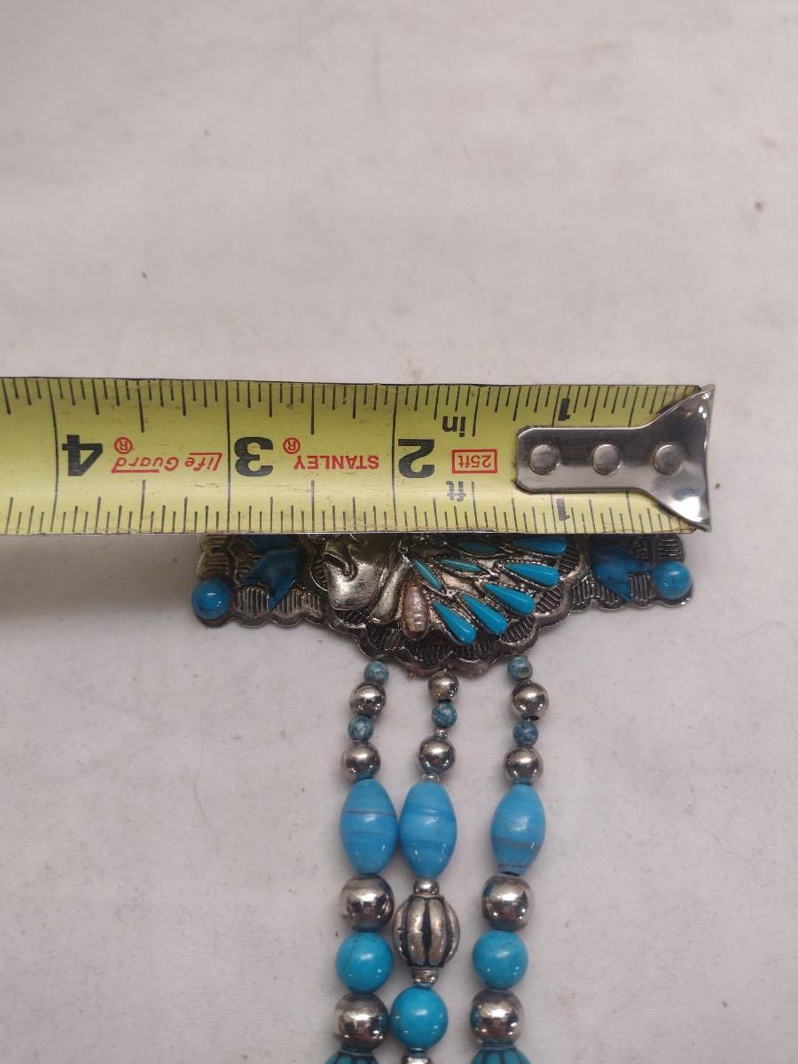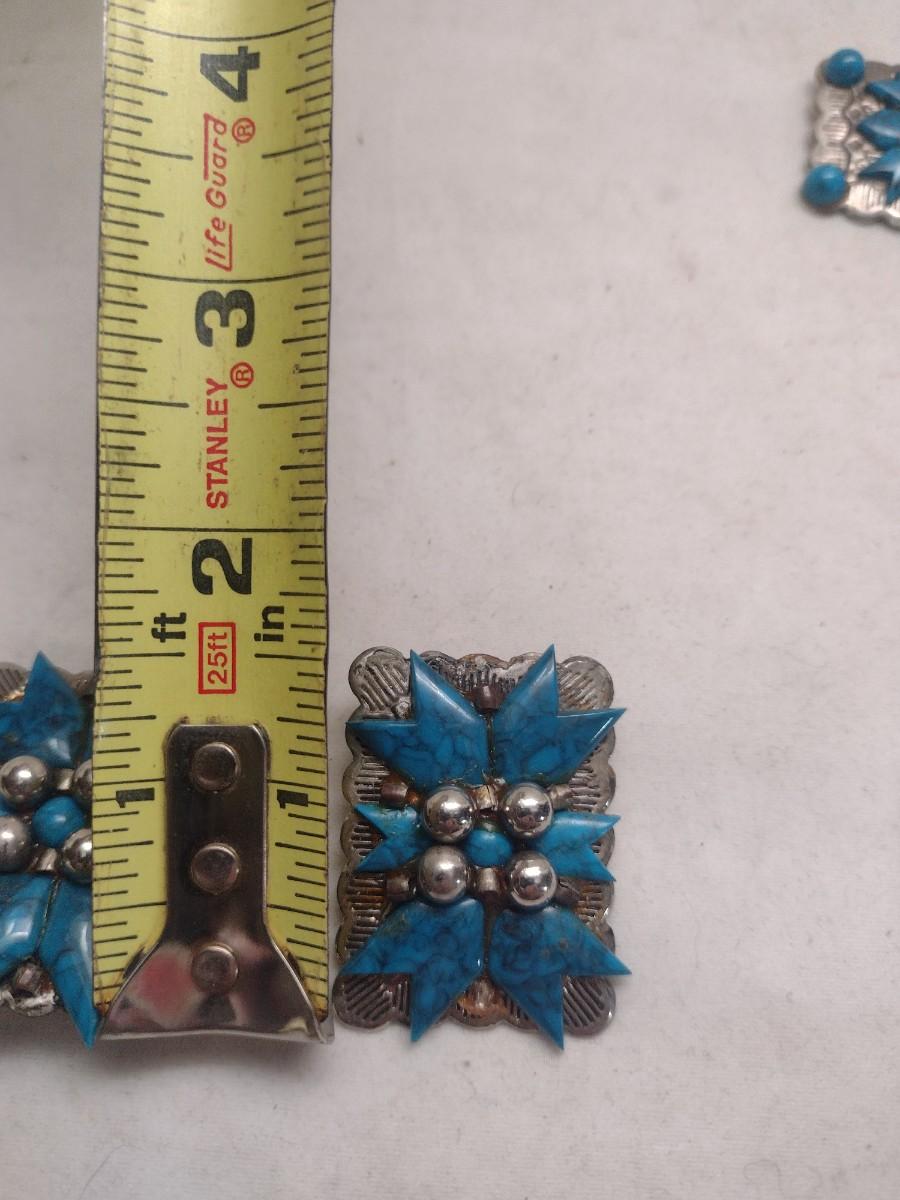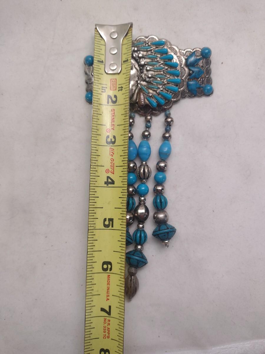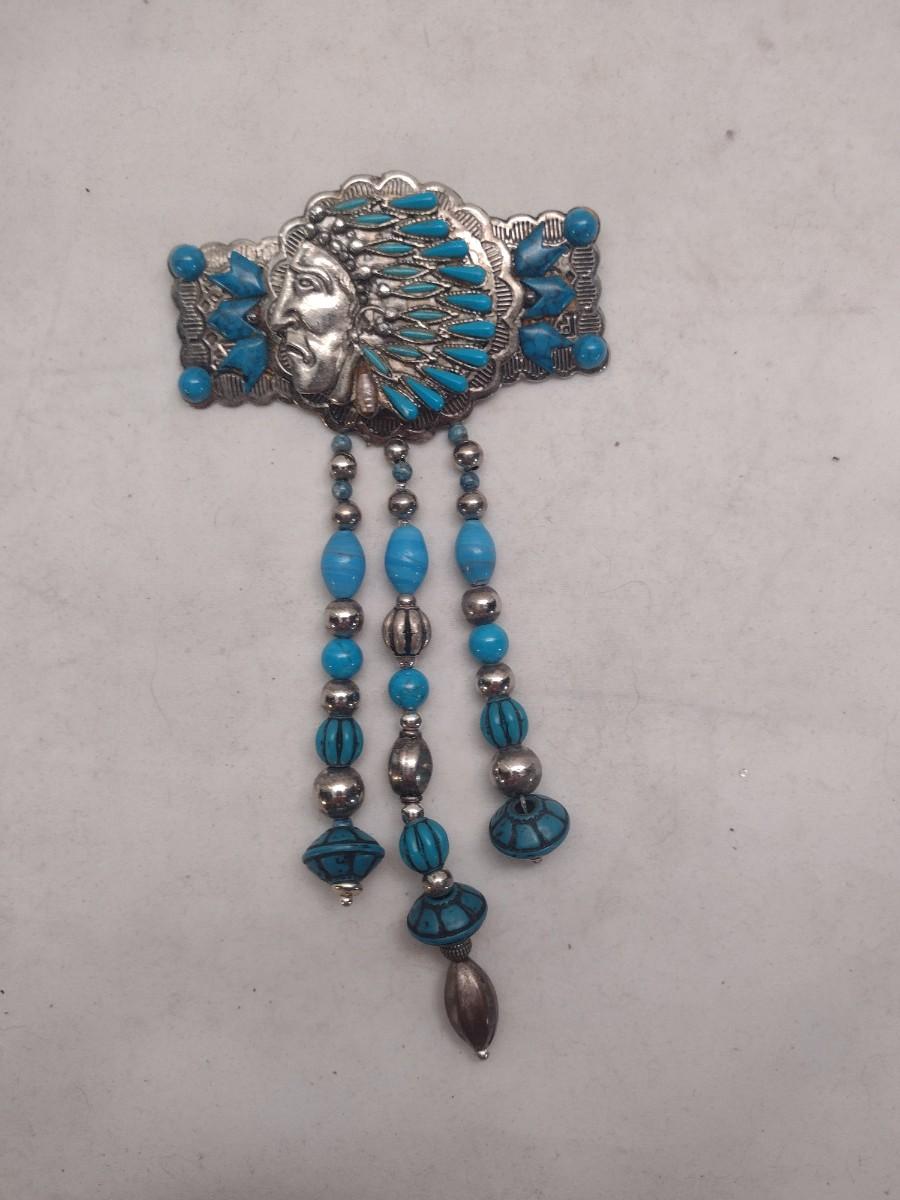 Metal and Turquoise Brooch and Earring Set (#36). Earrings are clip-on.