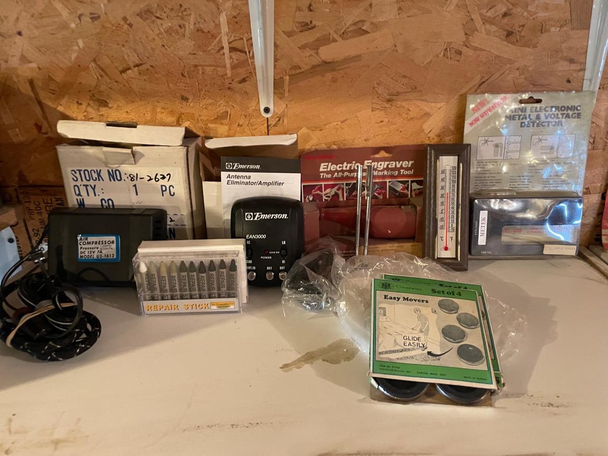 Metal and voltage detector, thermostat, electric engraver antenna, eliminator/amplifier AC compressor, repair sticks, movers and small magnetic pens