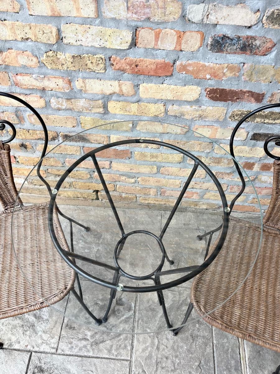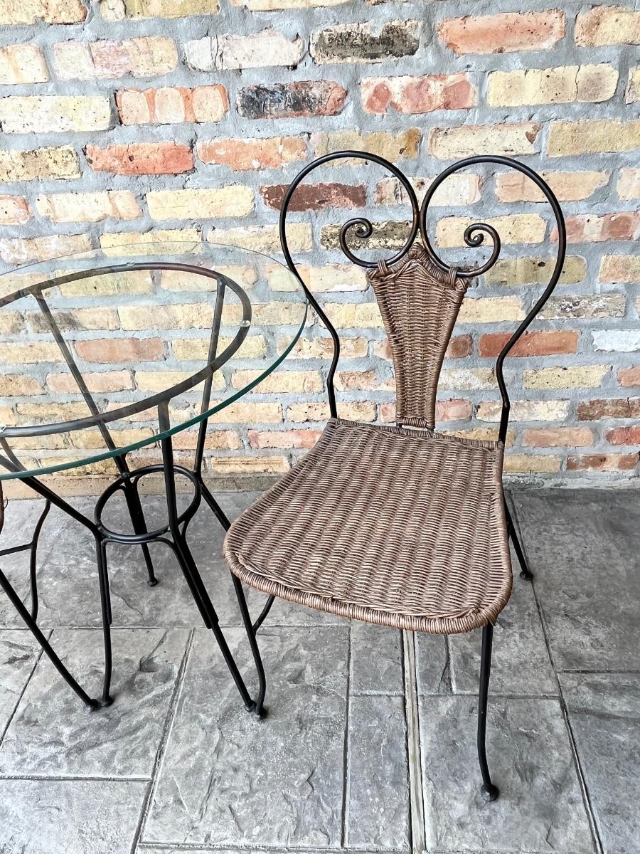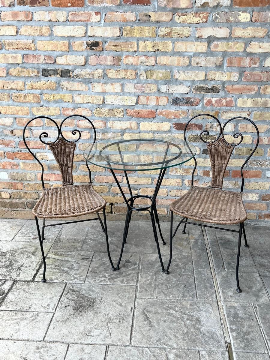 Metal & Wicker Outdoor Bistro Set ~Three (3) Piece Set