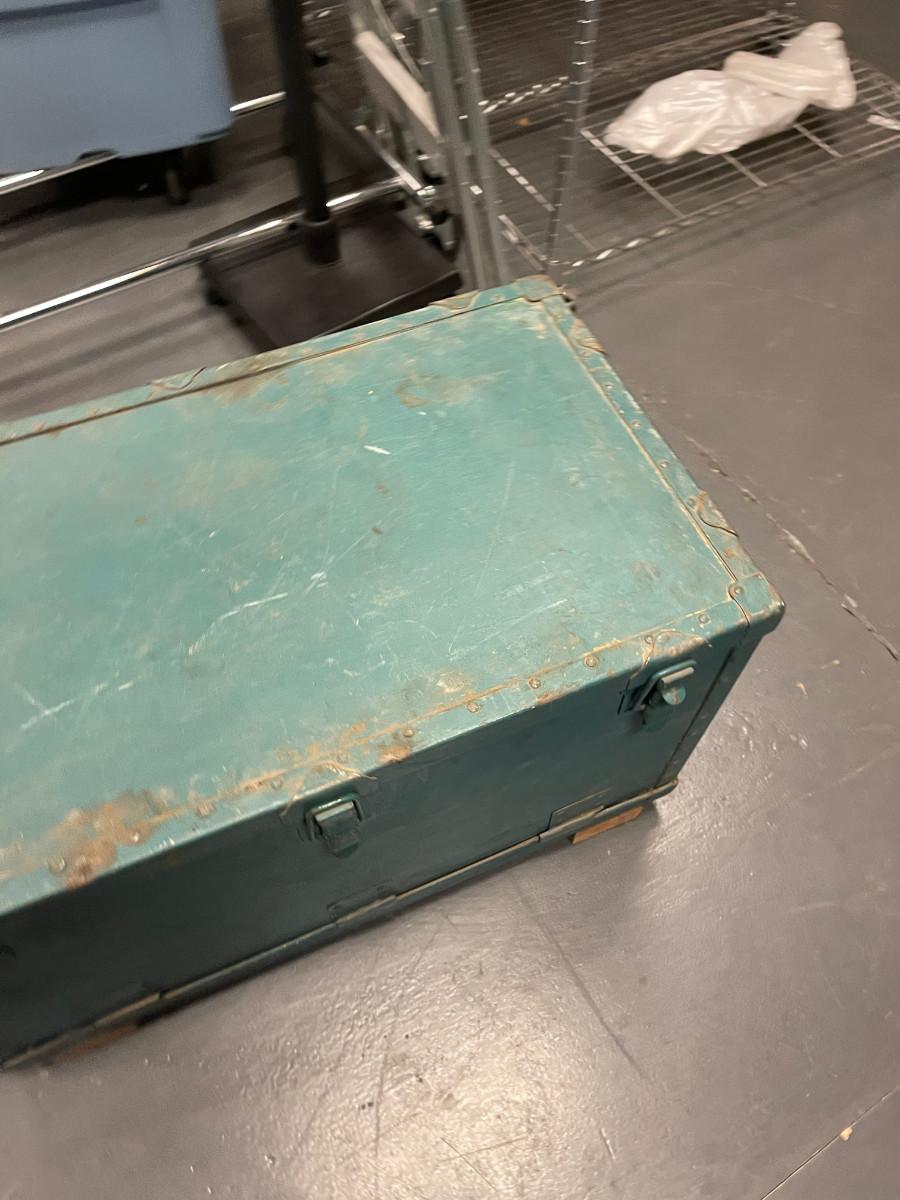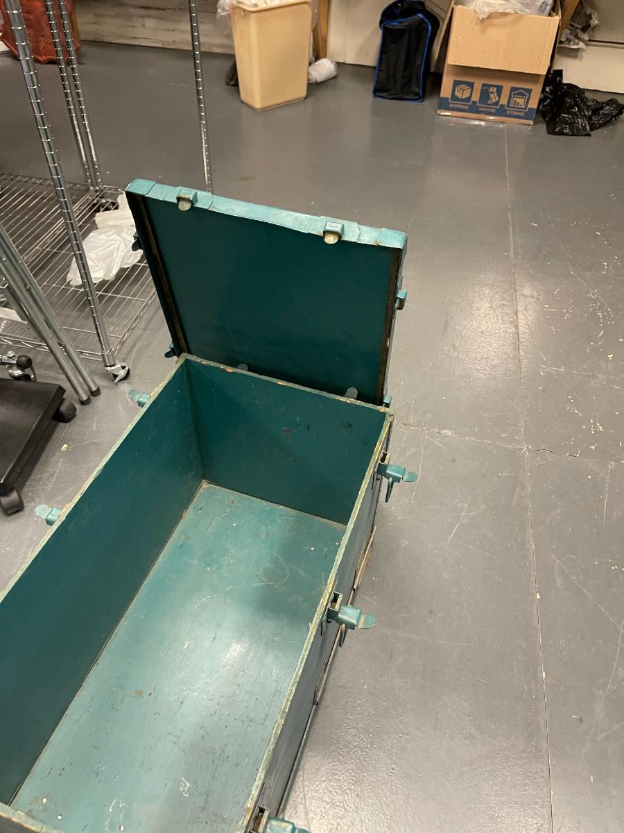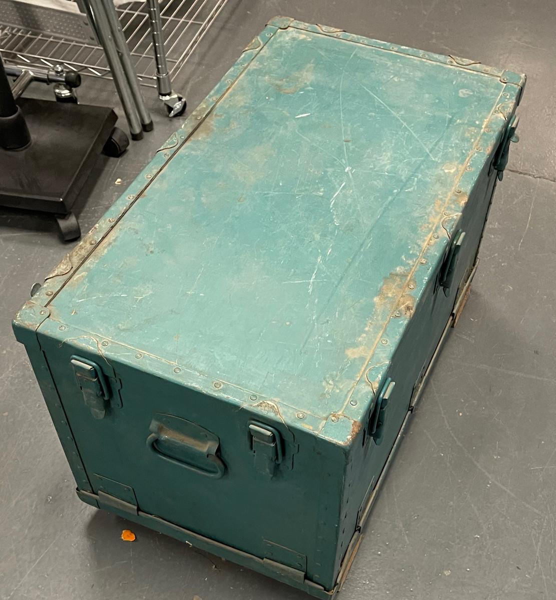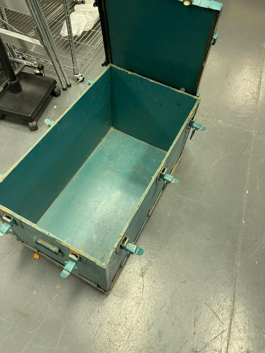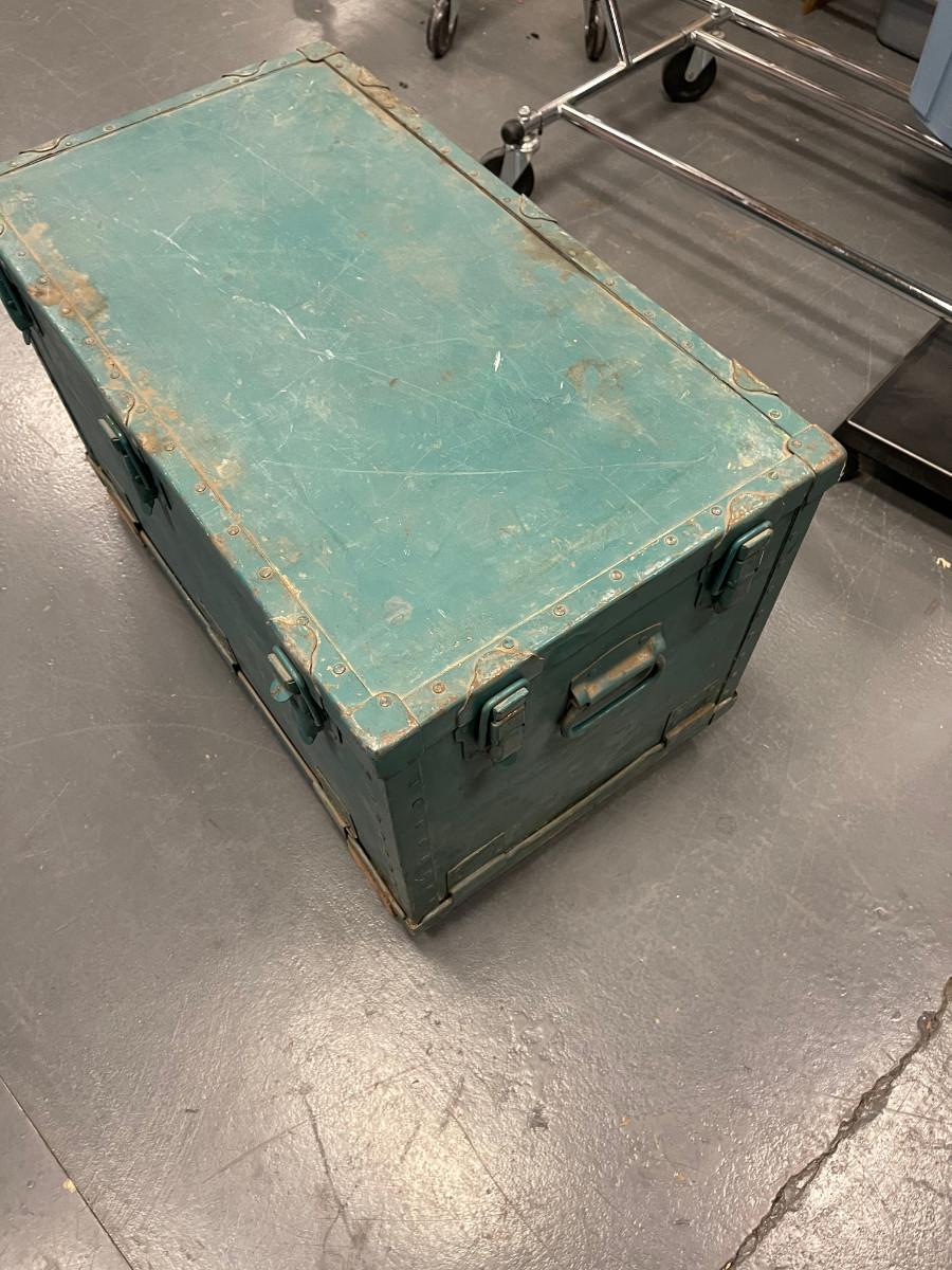 30 X 17 x 18 Used Works Cool Old Military Equipment Trunk that has been painted. Excellent for storage.