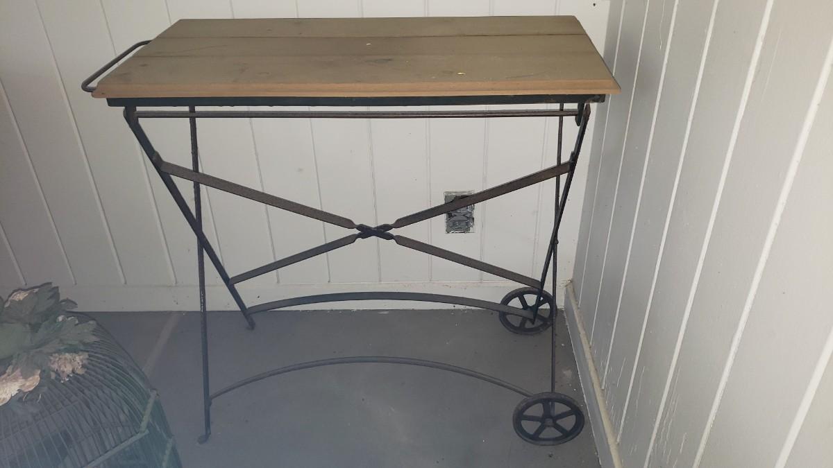Metal and wood 8 table 30 inches long