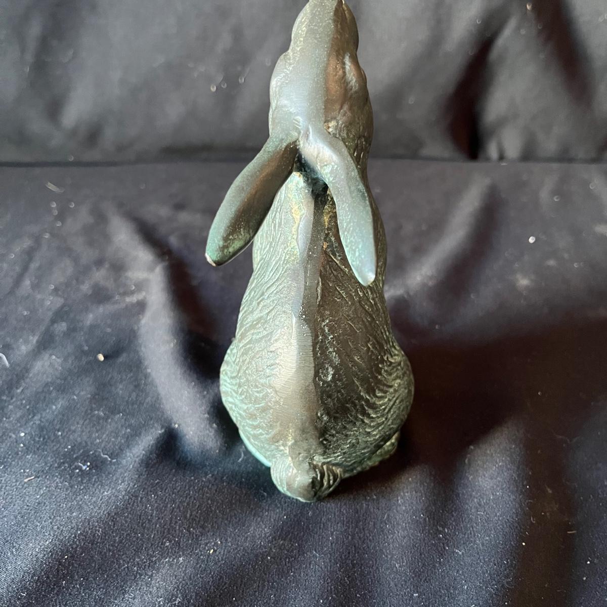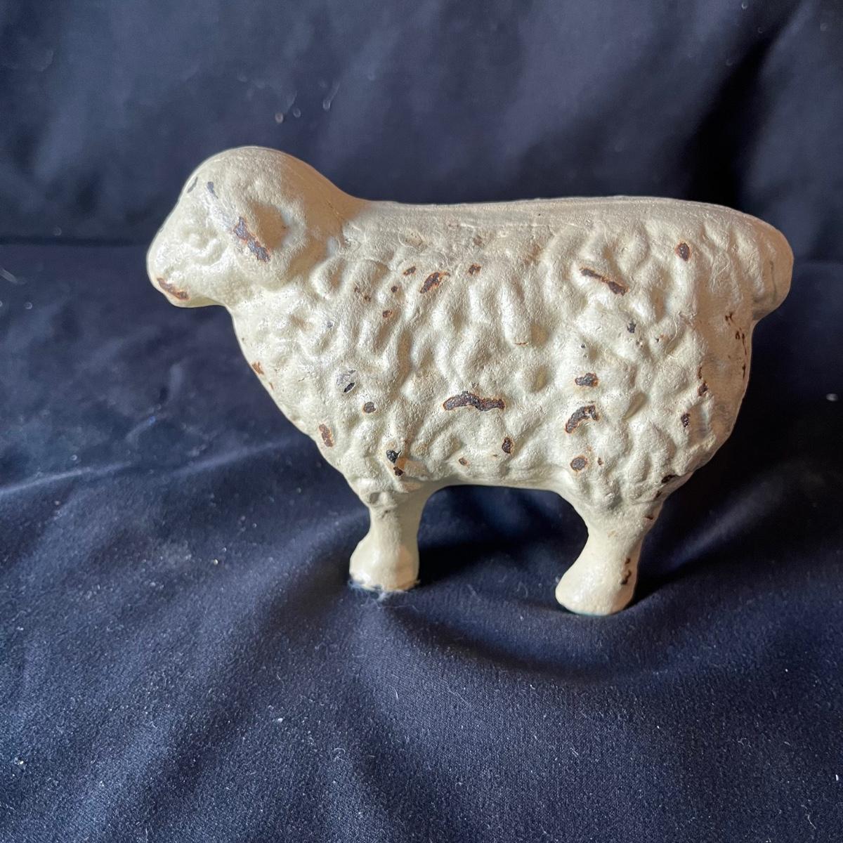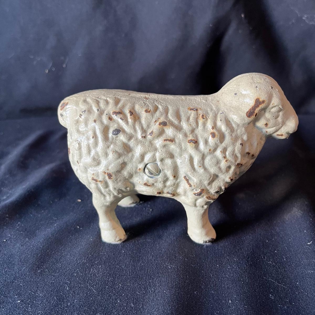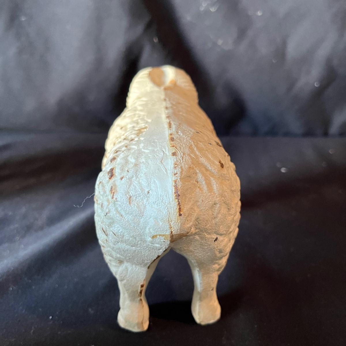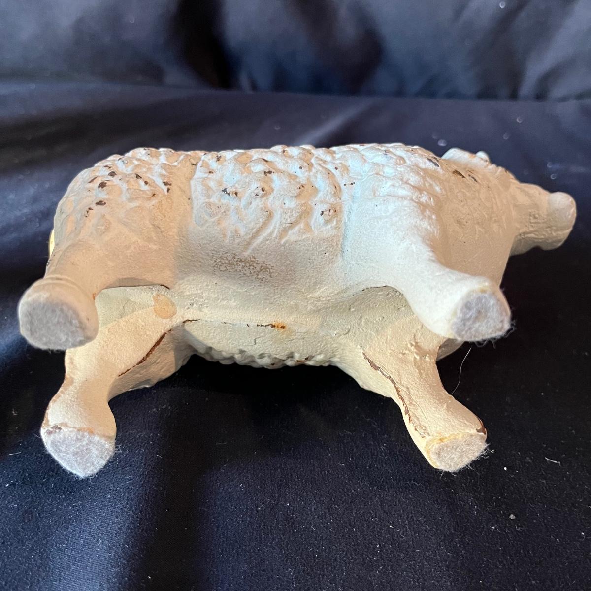 Lot includes a brass rabbit figurine and a painted heavy metal ram and sheep. Ram measures 2.5” x 7” x 4”.