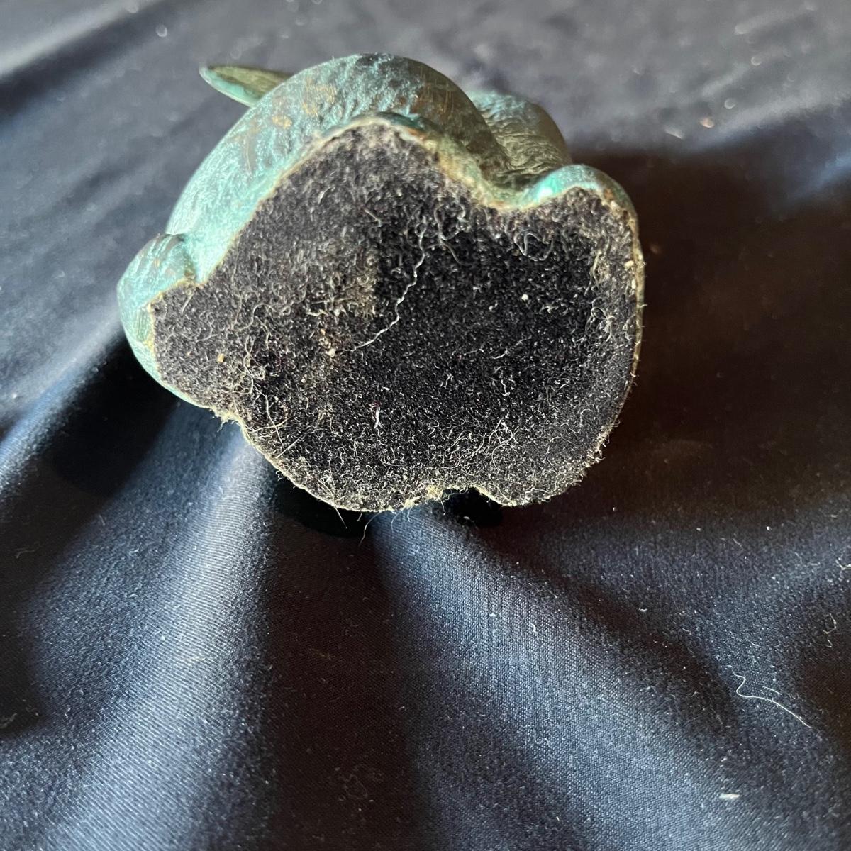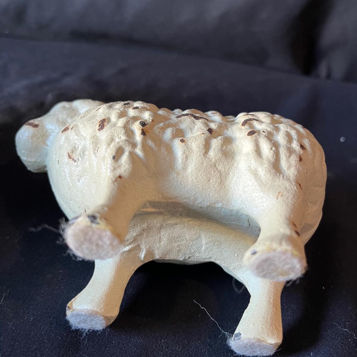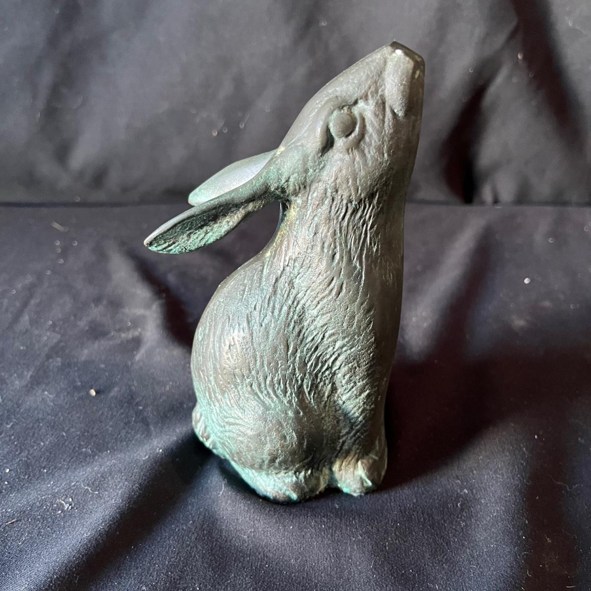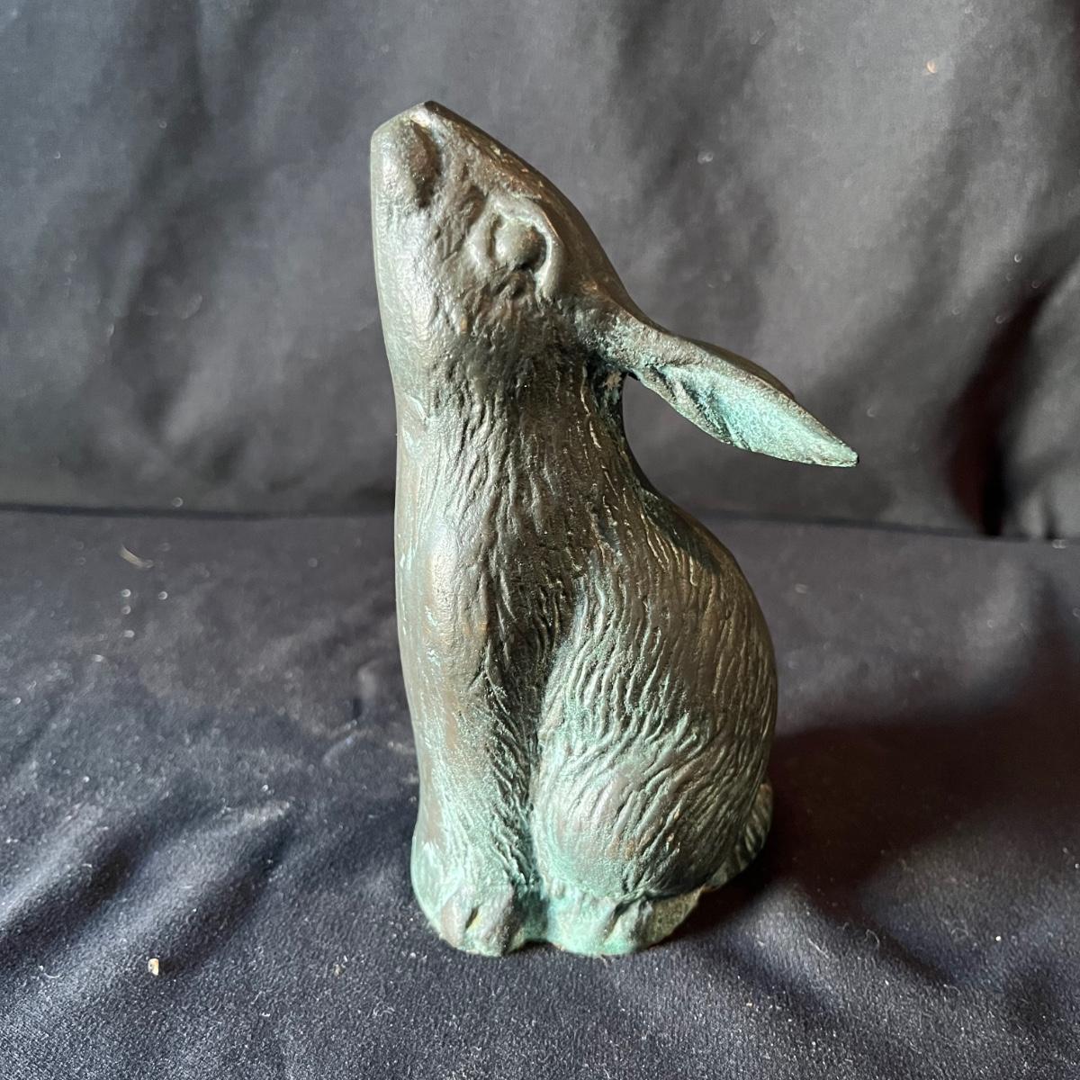 Lot includes a brass rabbit figurine and a painted heavy metal ram and sheep. Ram measures 2.5” x 7” x 4”.