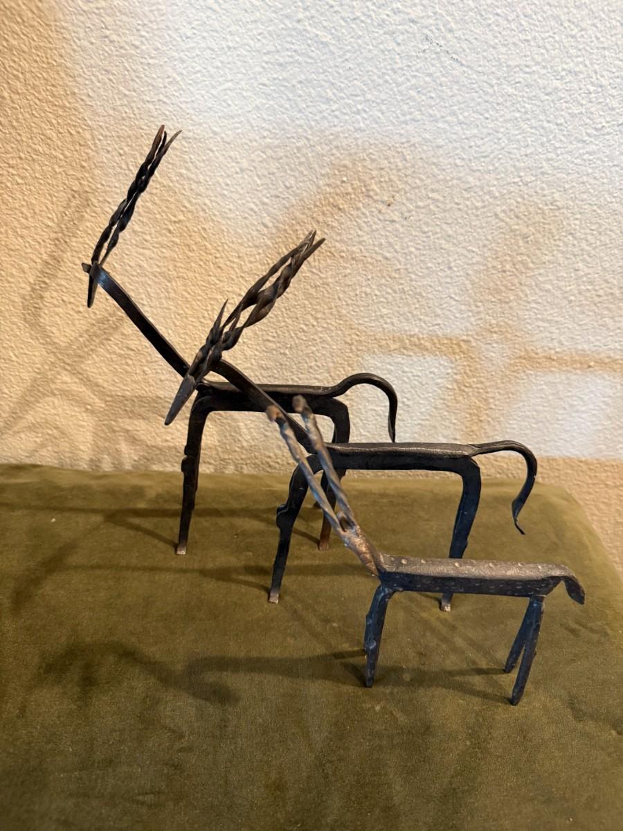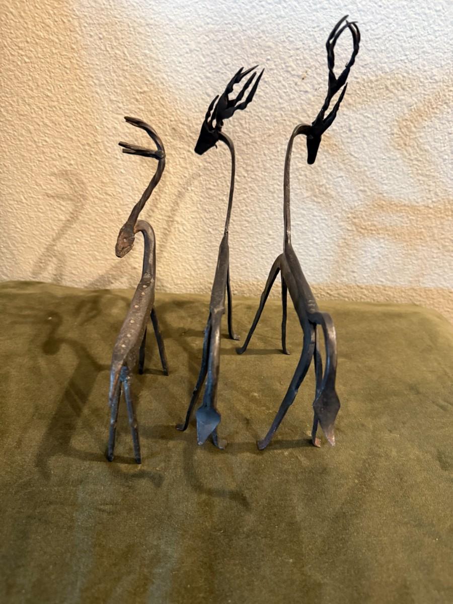 Metal Antelope Sculpture - Set of 3