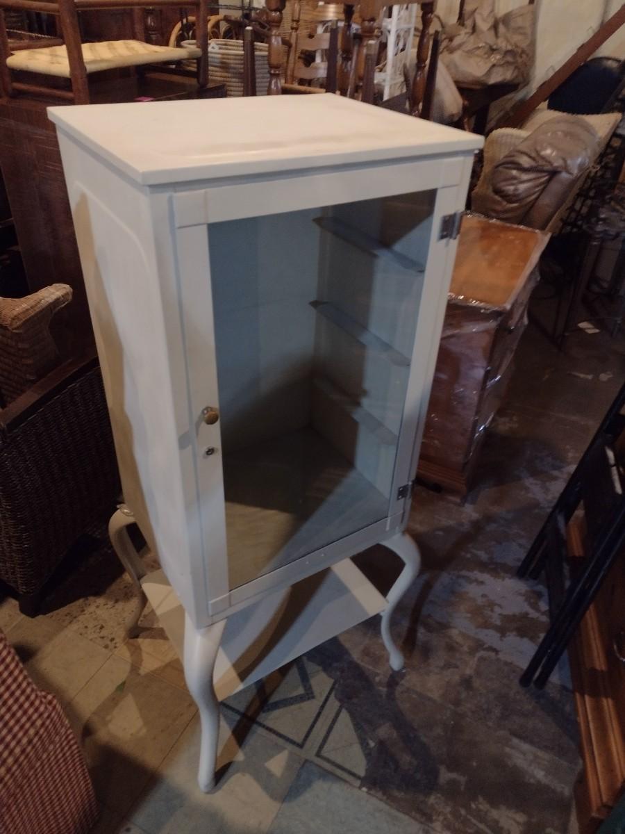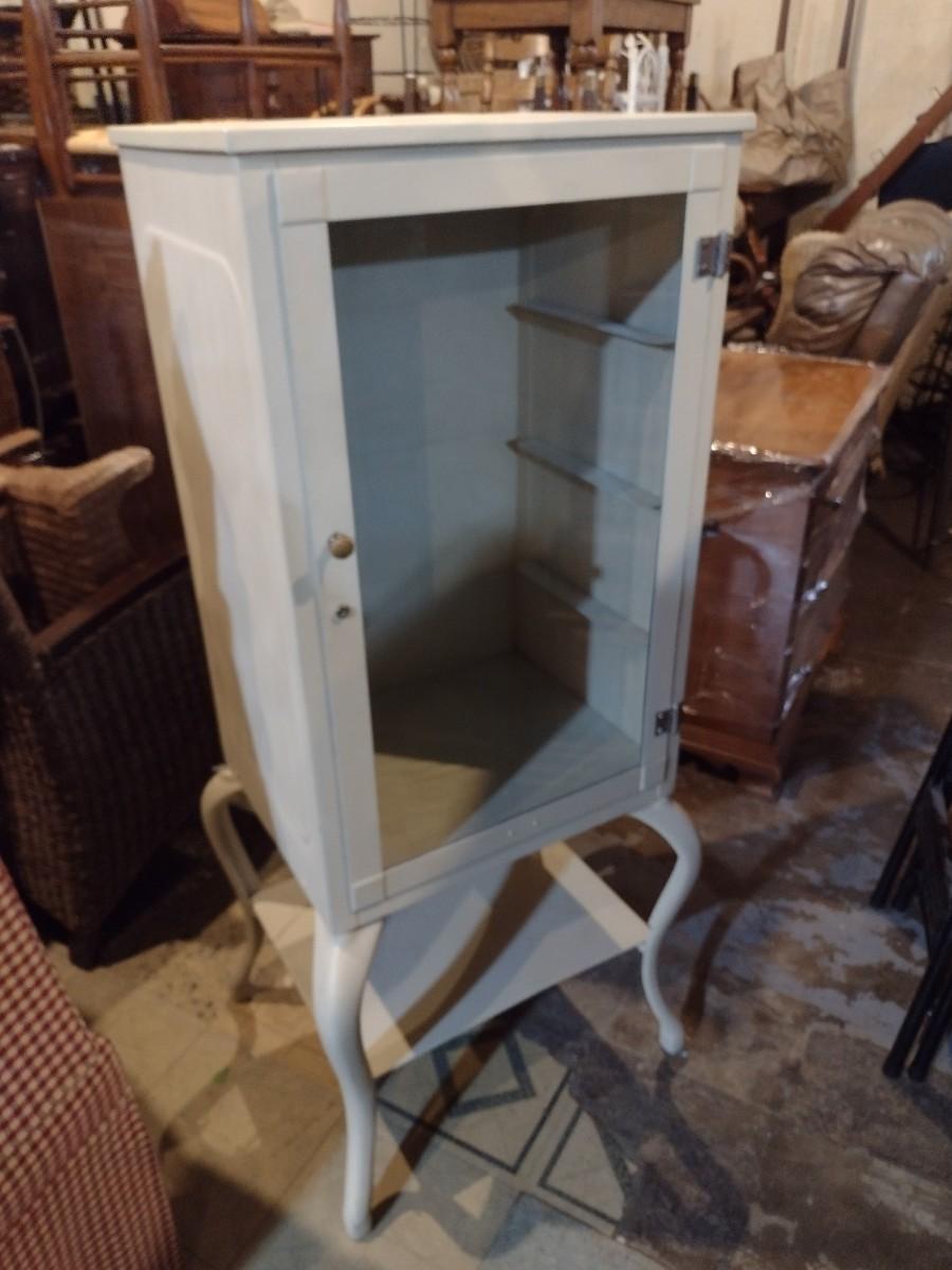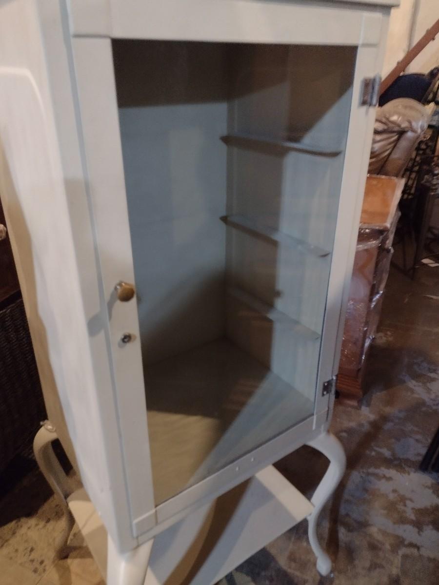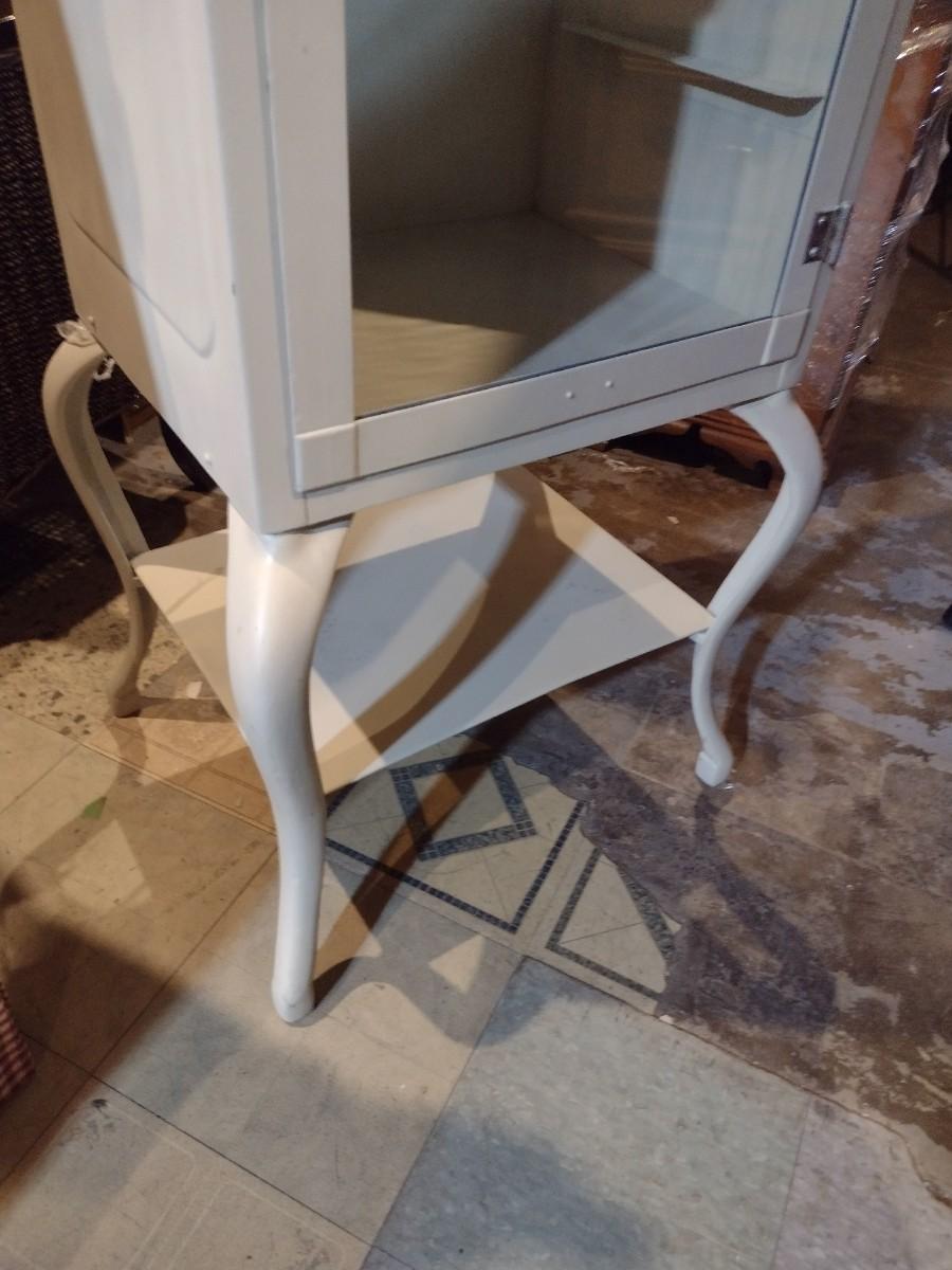 Metal Apothecary Cabinet with Cabriole Legs and Glass Front Door
