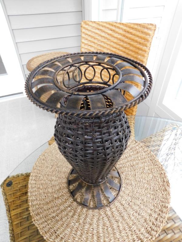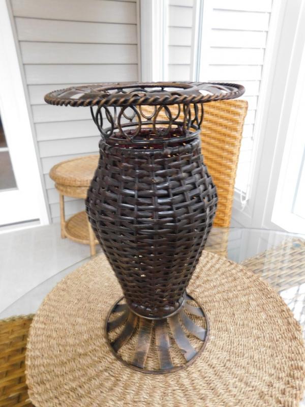 Metal Art Piece Simulating Wicker Weave in good condition. Great for dried flowers.