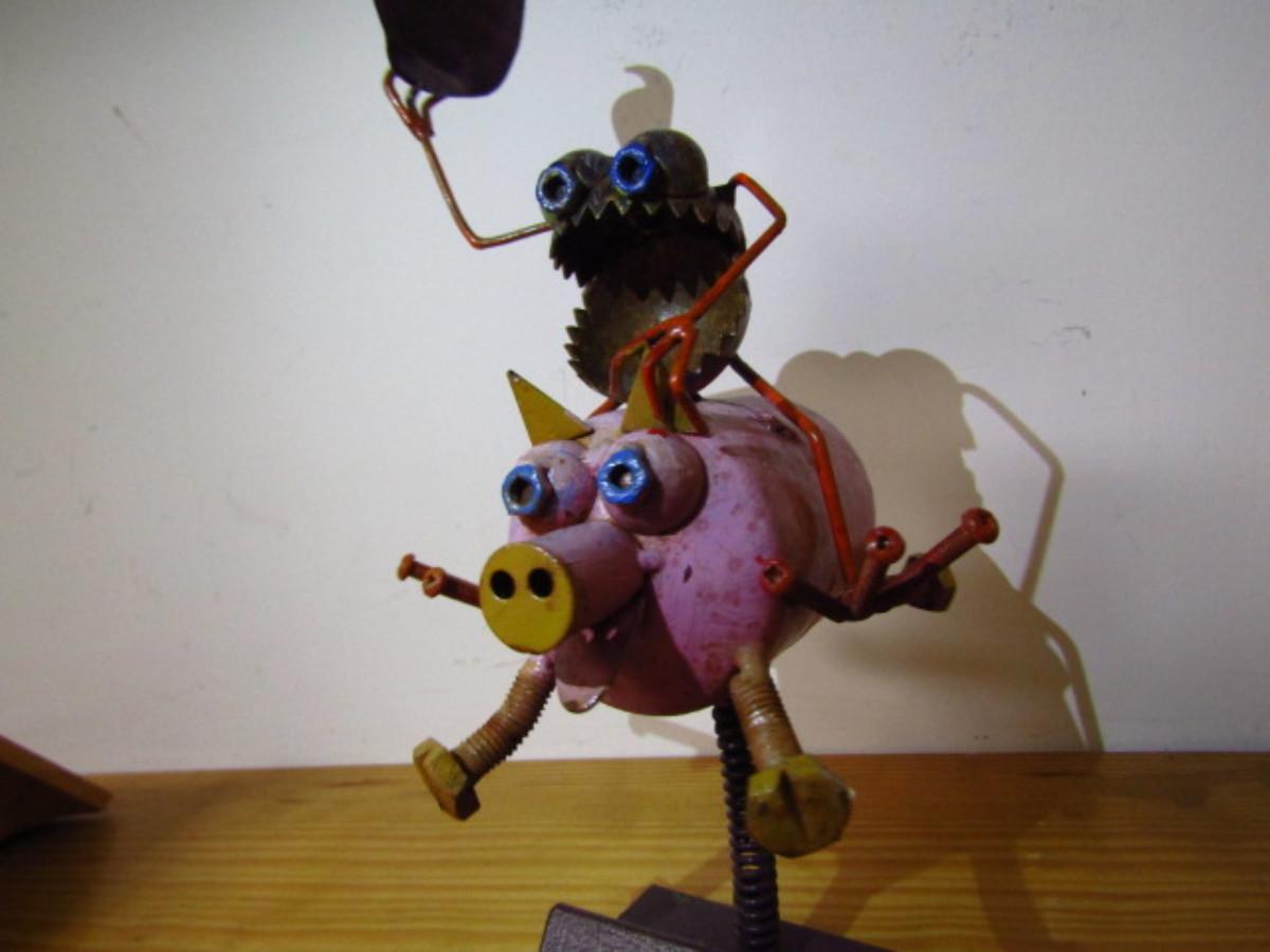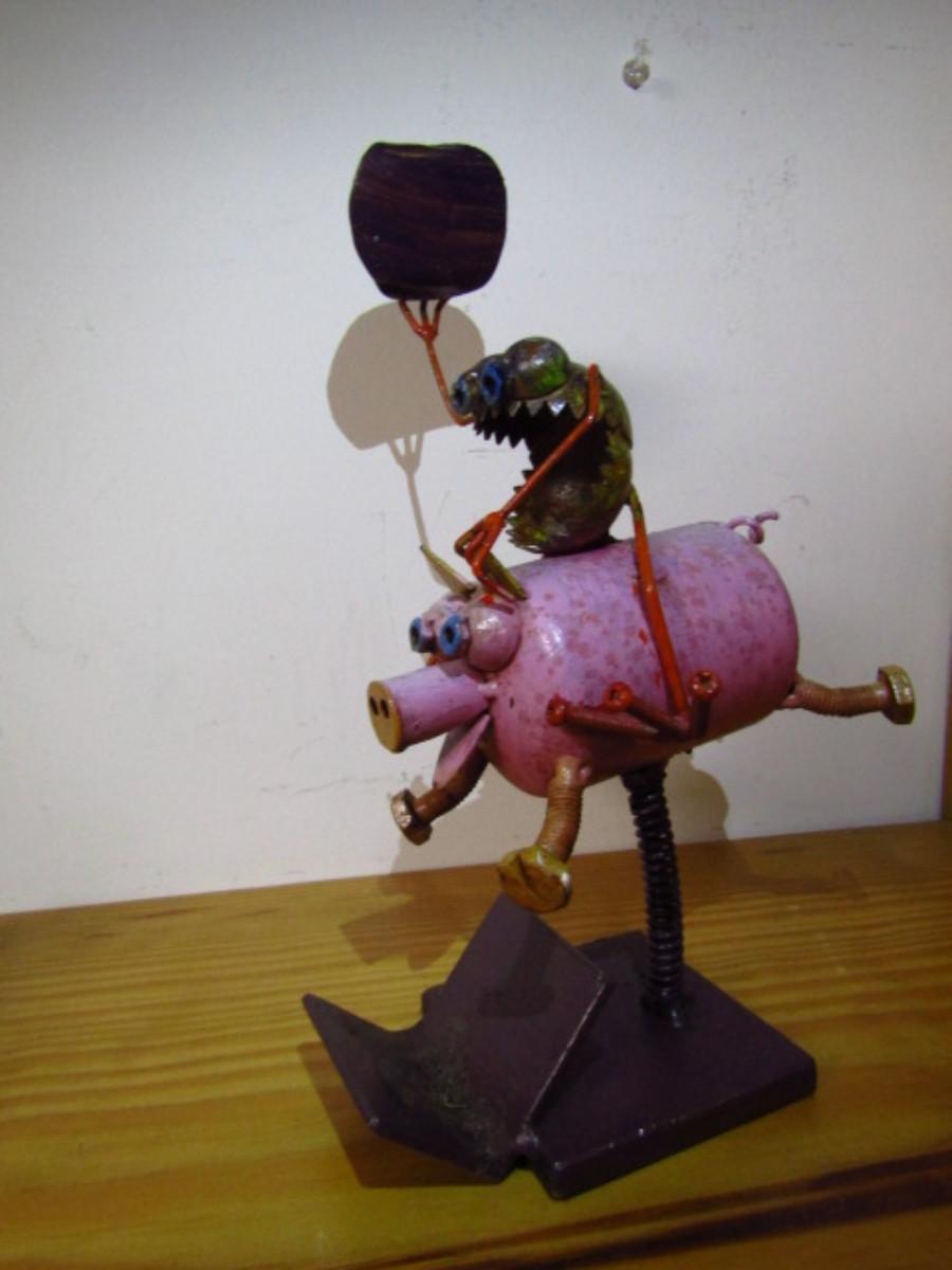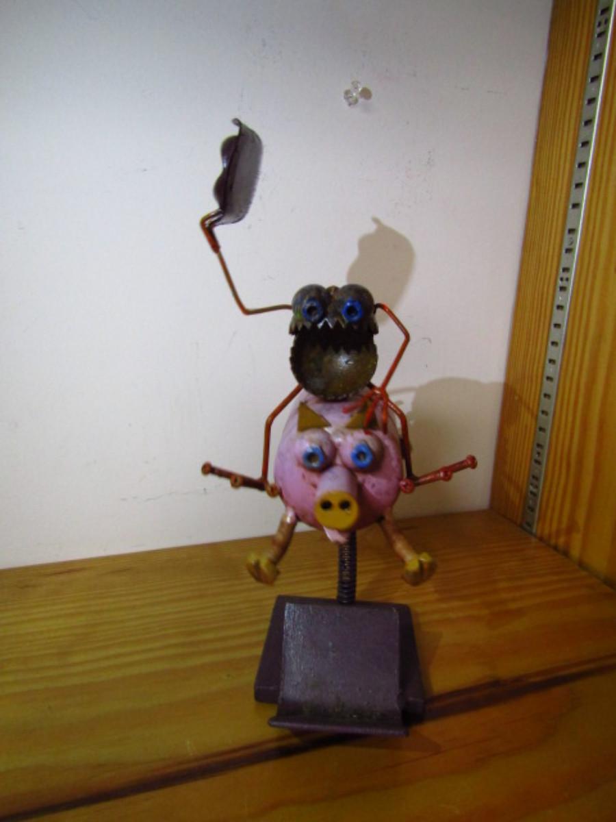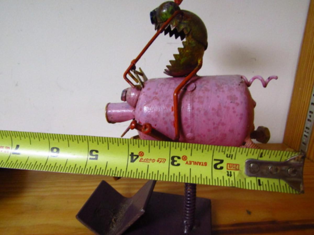 Metal Art- Rodeo Frog on Pig- With Spring for Rocking Action- Approx 9 1/2" Tall