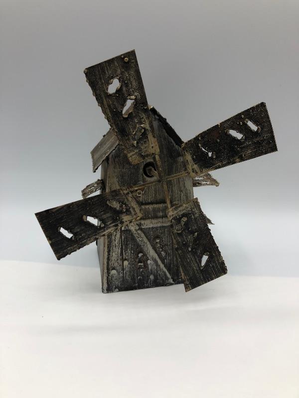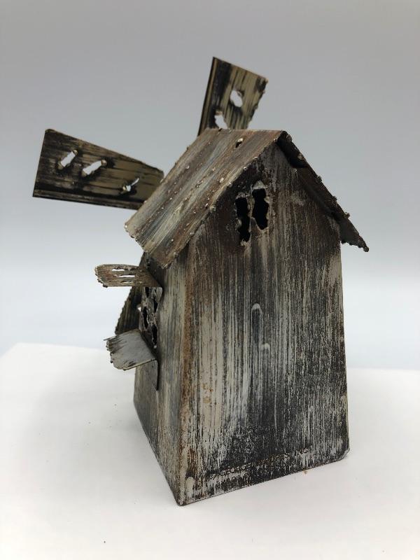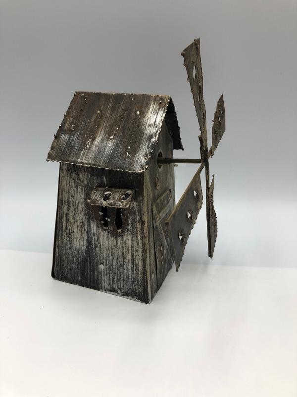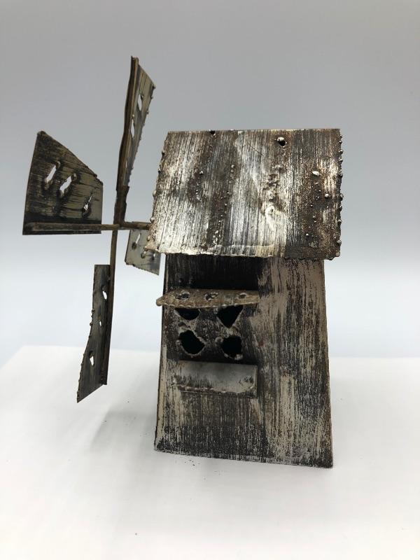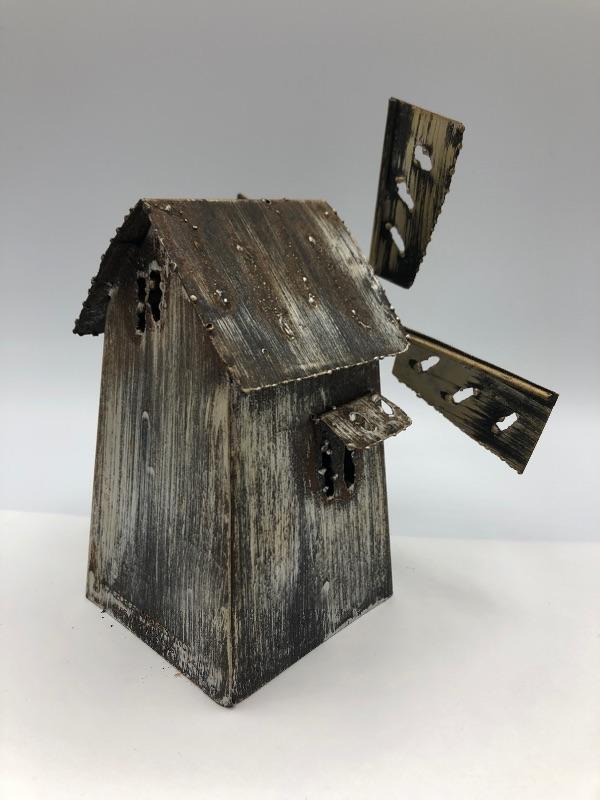 Metal art windmill music box. The fan part is the turning mechanism for the music player, but it does not play. Displays nicely.