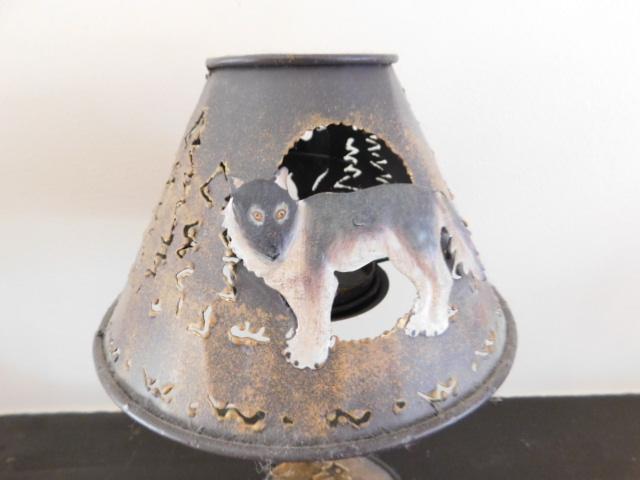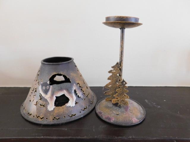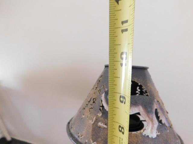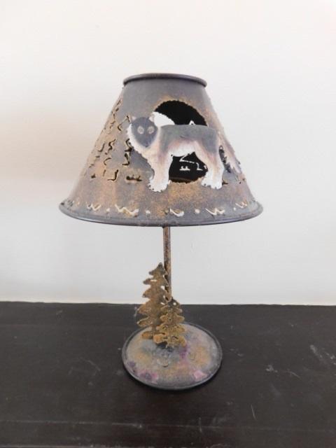 Metal Art Wolf Forest Desert Moon Tealight Shade and Stand 10"