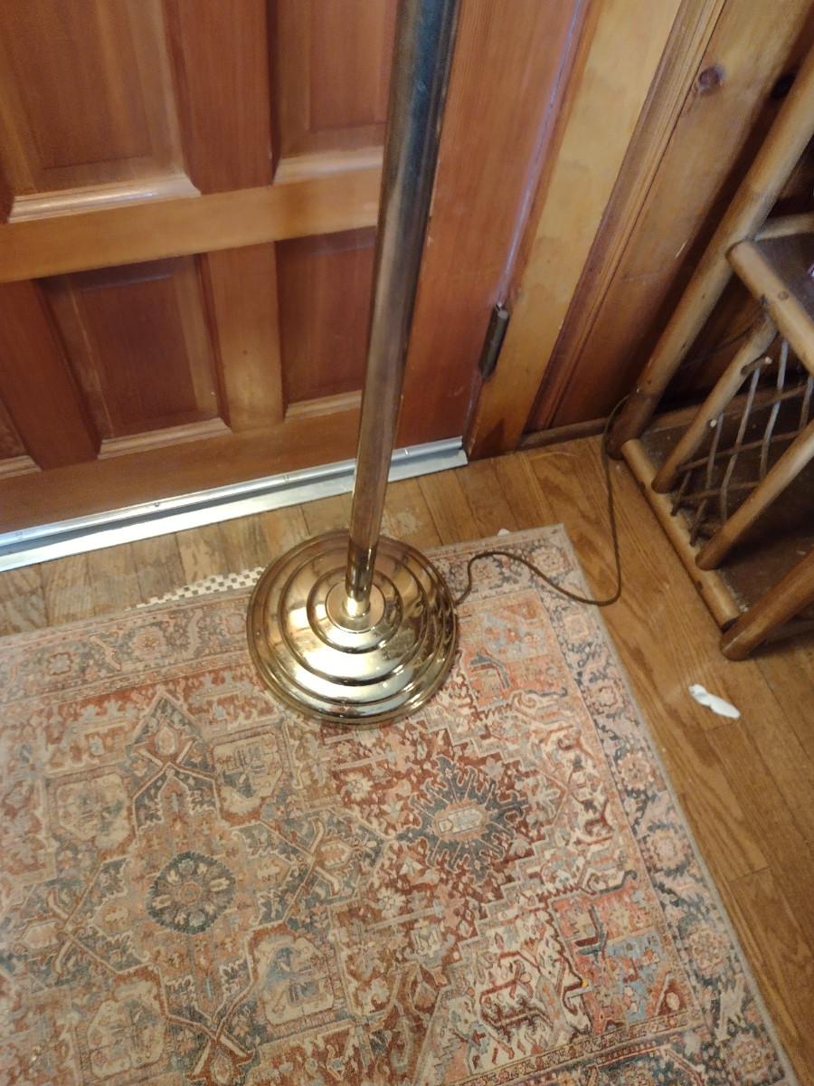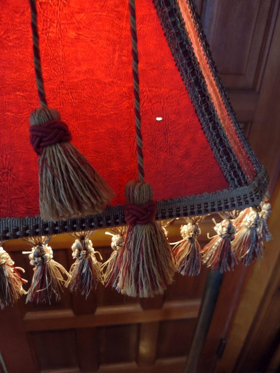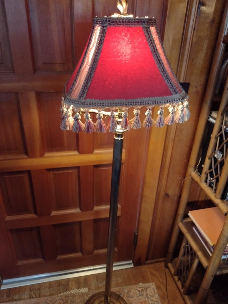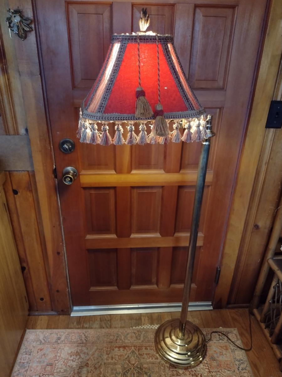 Metal Articulating Arm Floor Lamp with Tasseled Shade. Approx 56" tall.