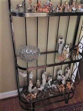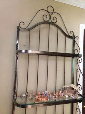 Metal Bakers Rack with glass shelves. Accessories not included. (This unit is one piece, but in 2 photos. See both photos for whole unit.