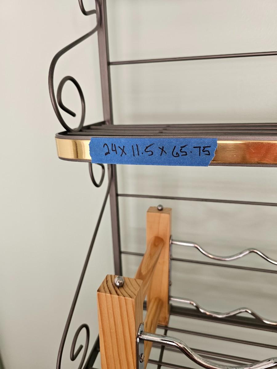 Measures 24x11.5x65.75, also includes a wine rack and punch bowl
