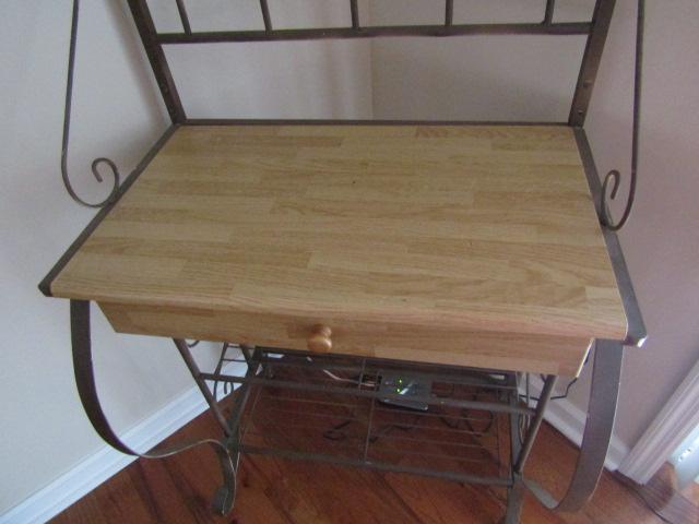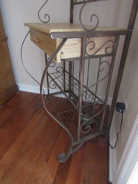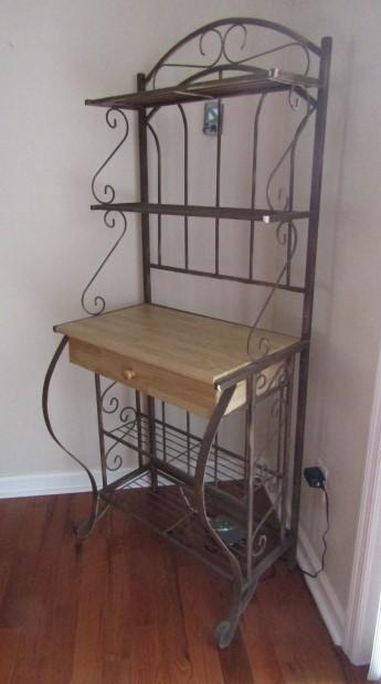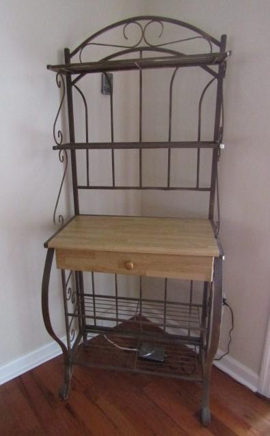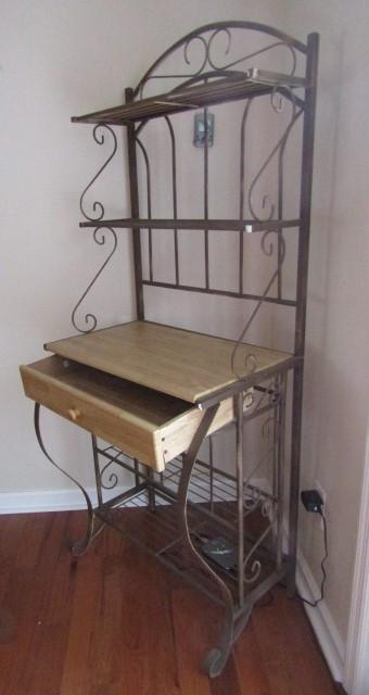 Metal Baker's Rack Shelf with Drawer 27 1/2" Wide x 16 3/4 " x 68 1/2 " High. Please see pictures- a couple of places have paint missing.