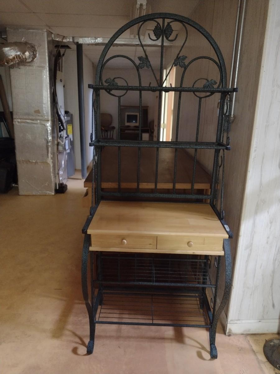 Metal Baker's Rack with Wood Finish Shelf with Drawers