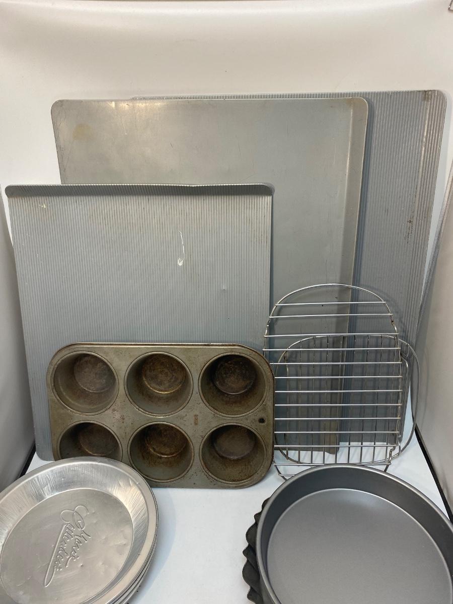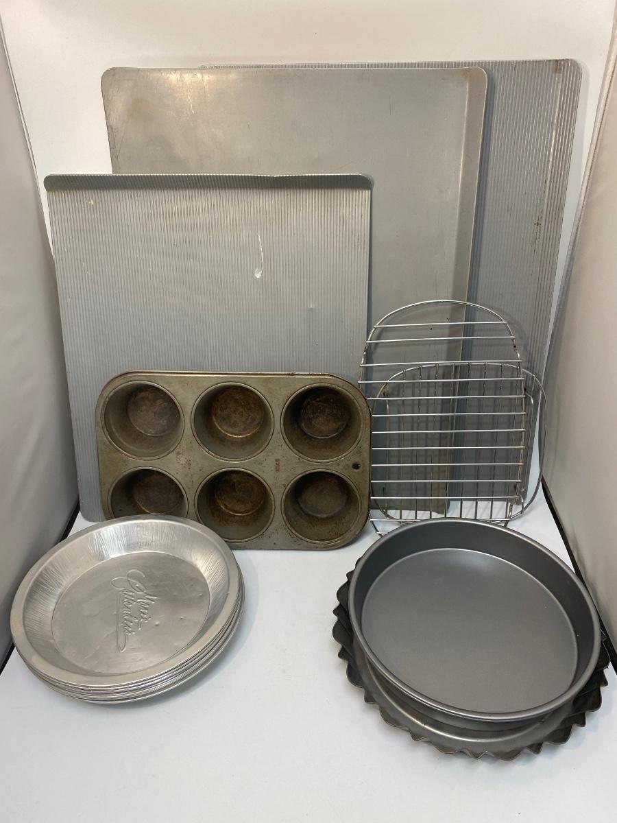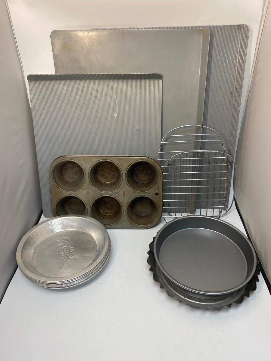 Metal Bakeware Lot Cookie Sheets Muffin Tin Pie Pans