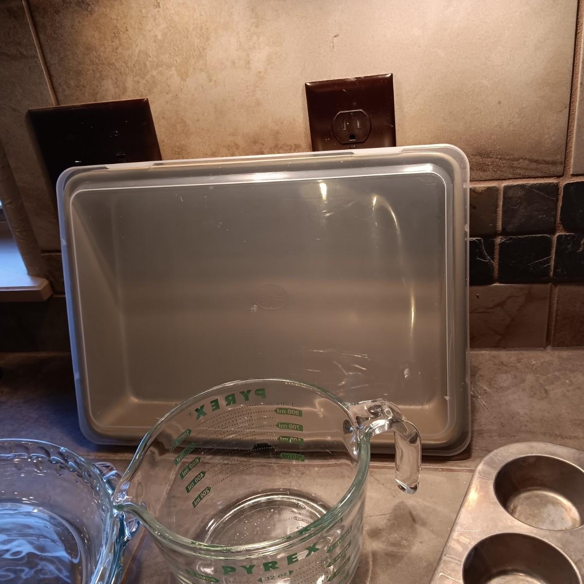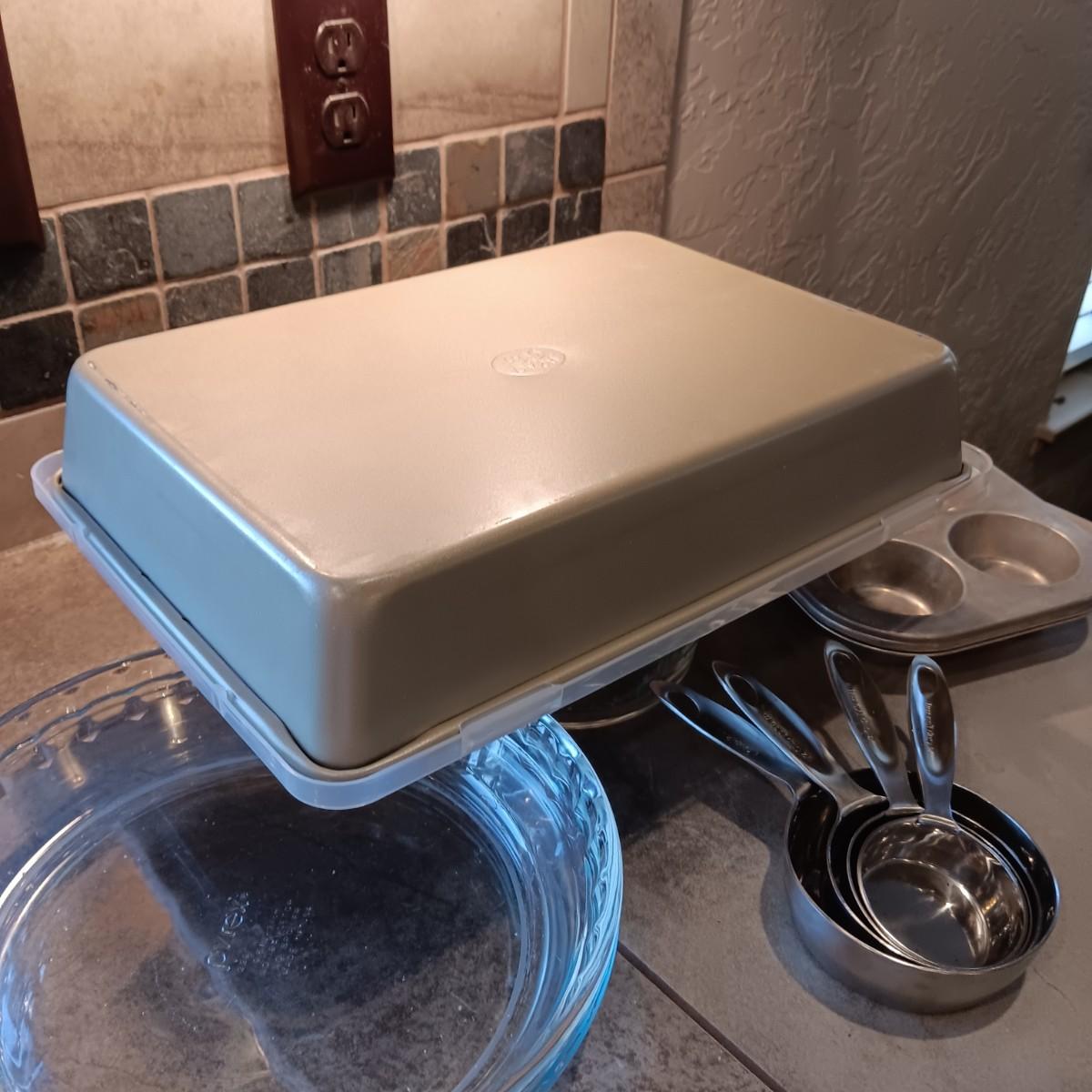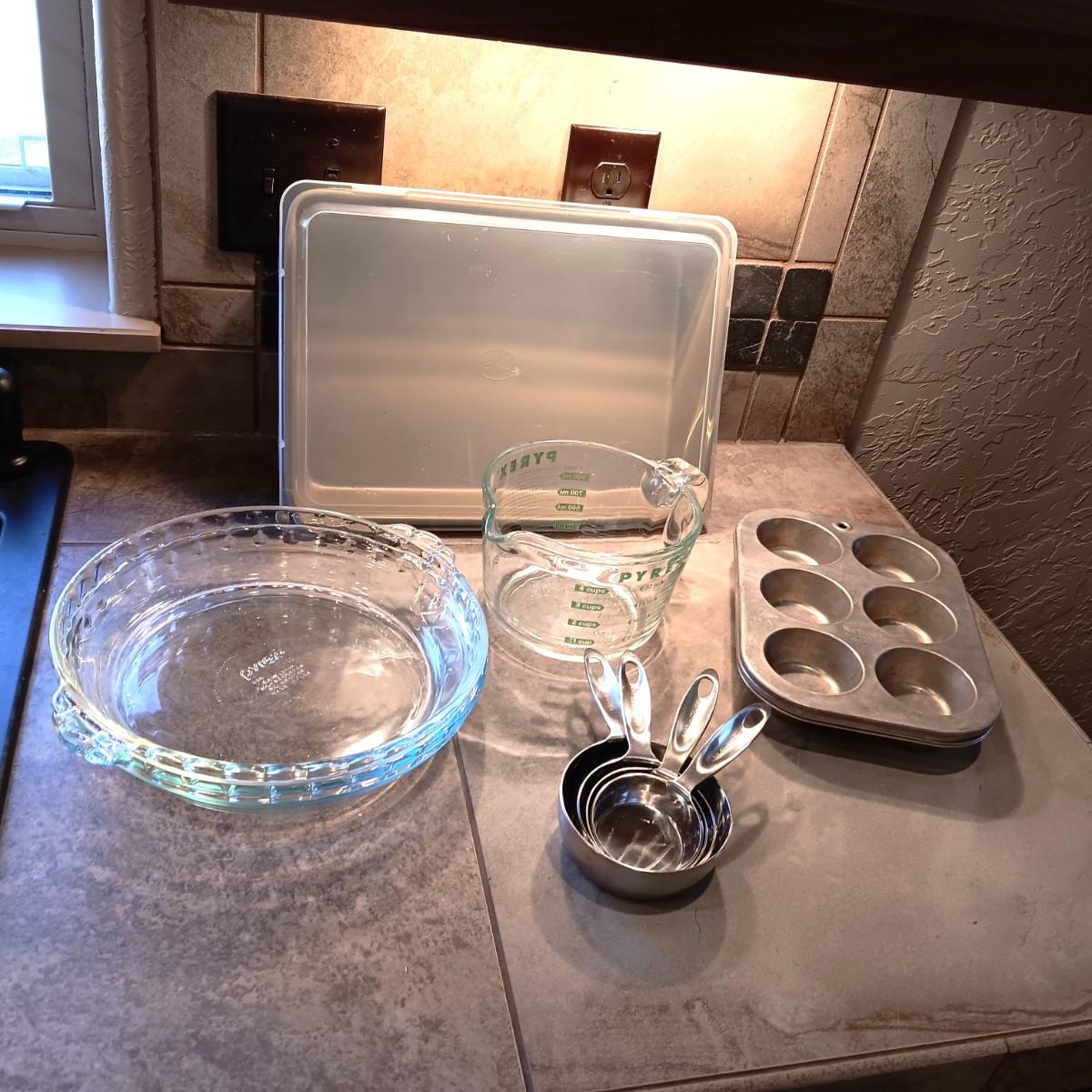 METAL BAKING PAN W/STORAGE LID, MUFFIN PANS, PIE PANS & MEASURING CUPS