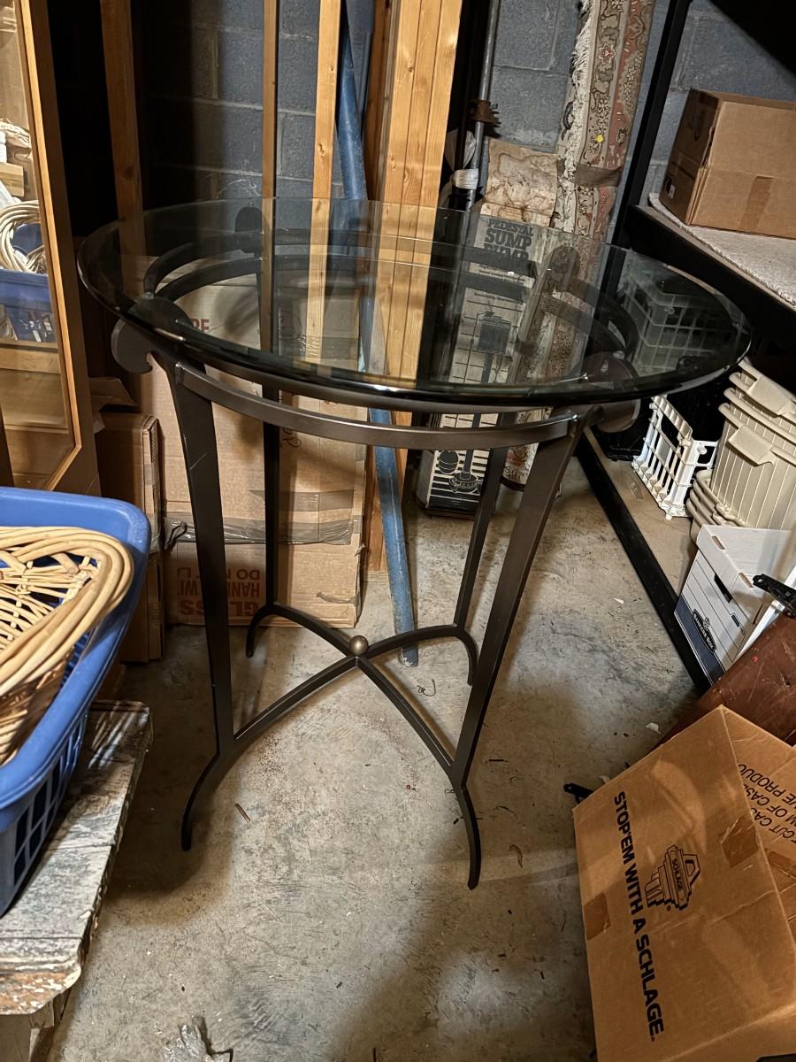 Metal Base Glass Top Accent Table