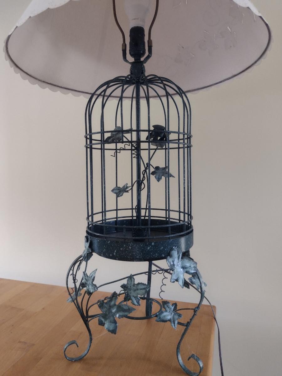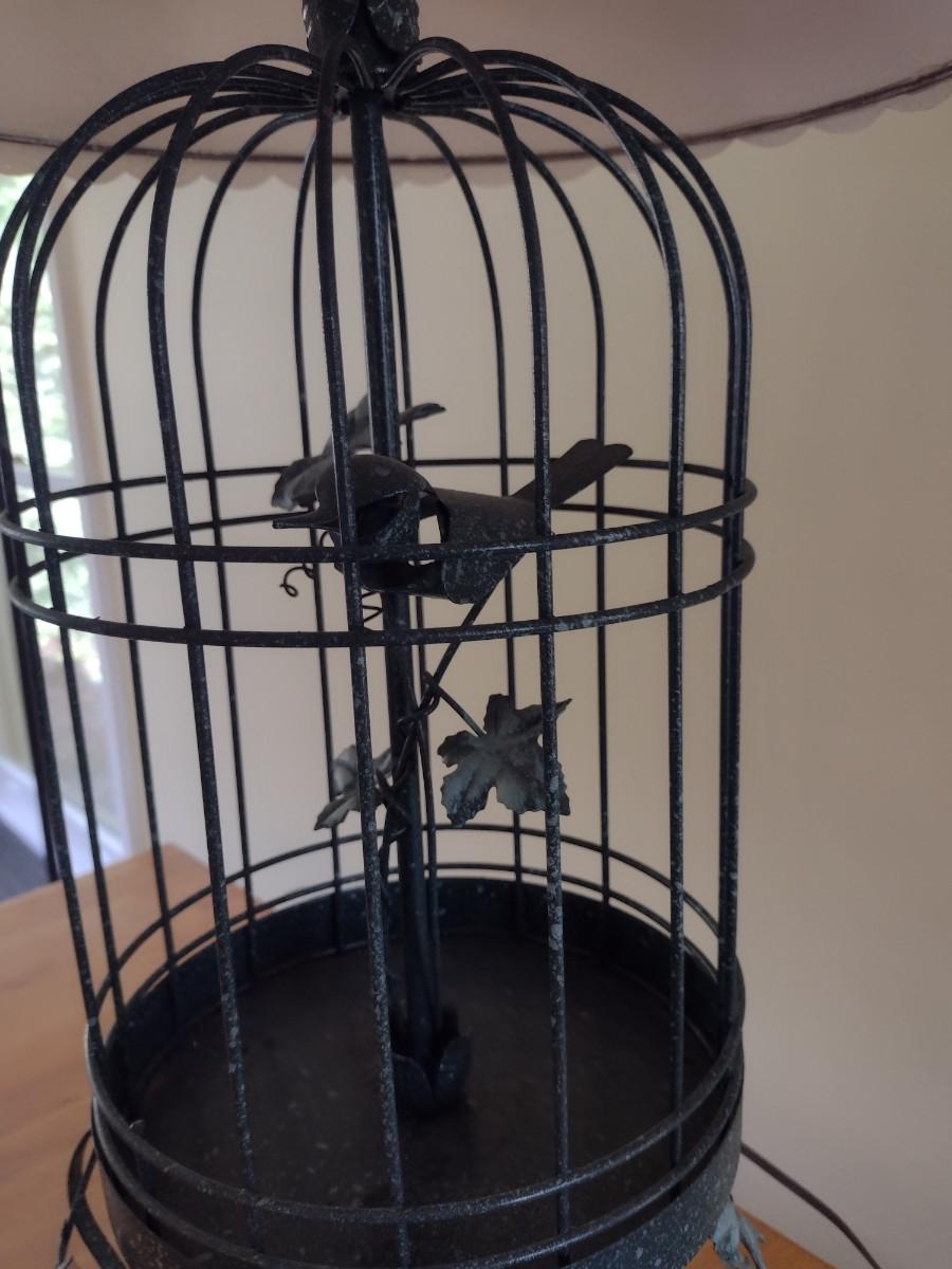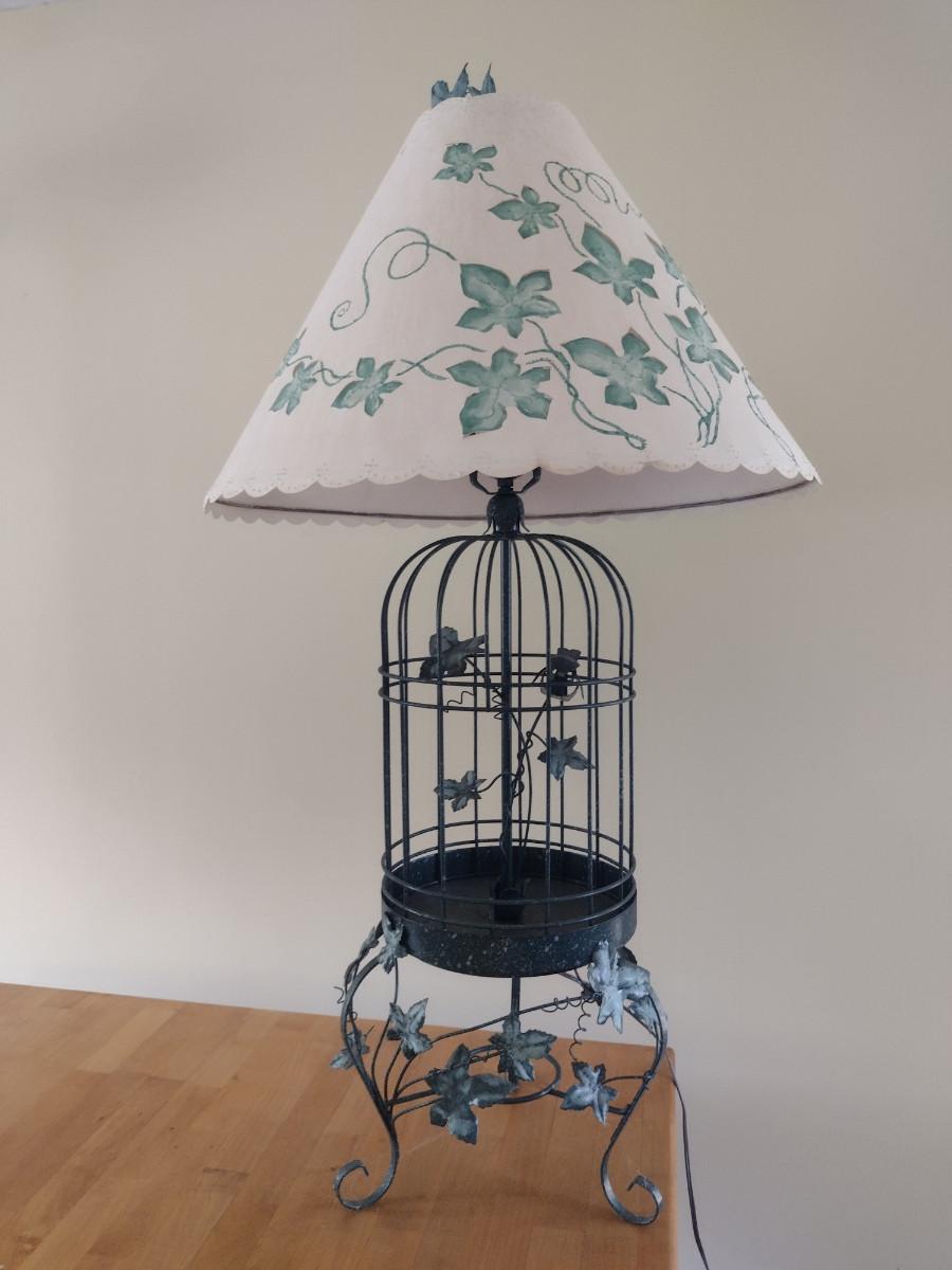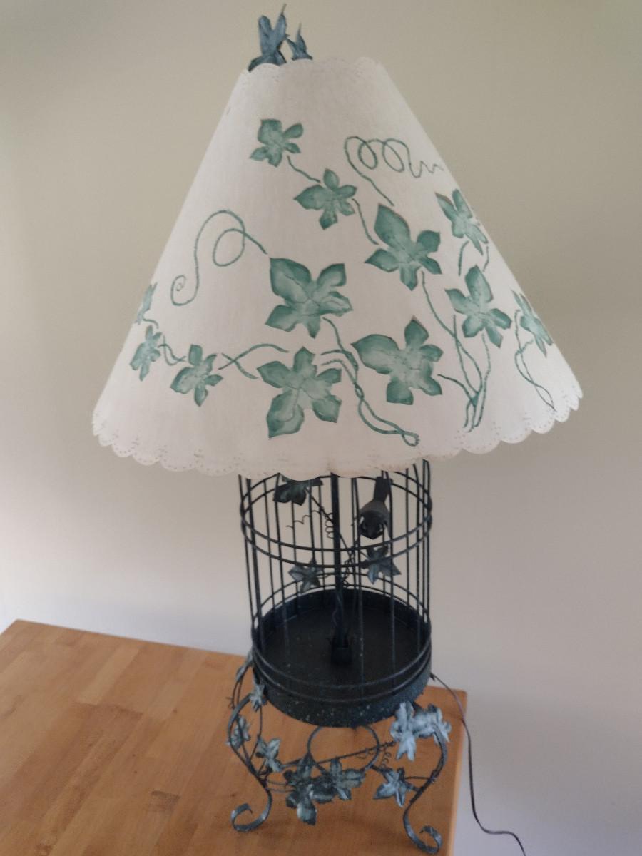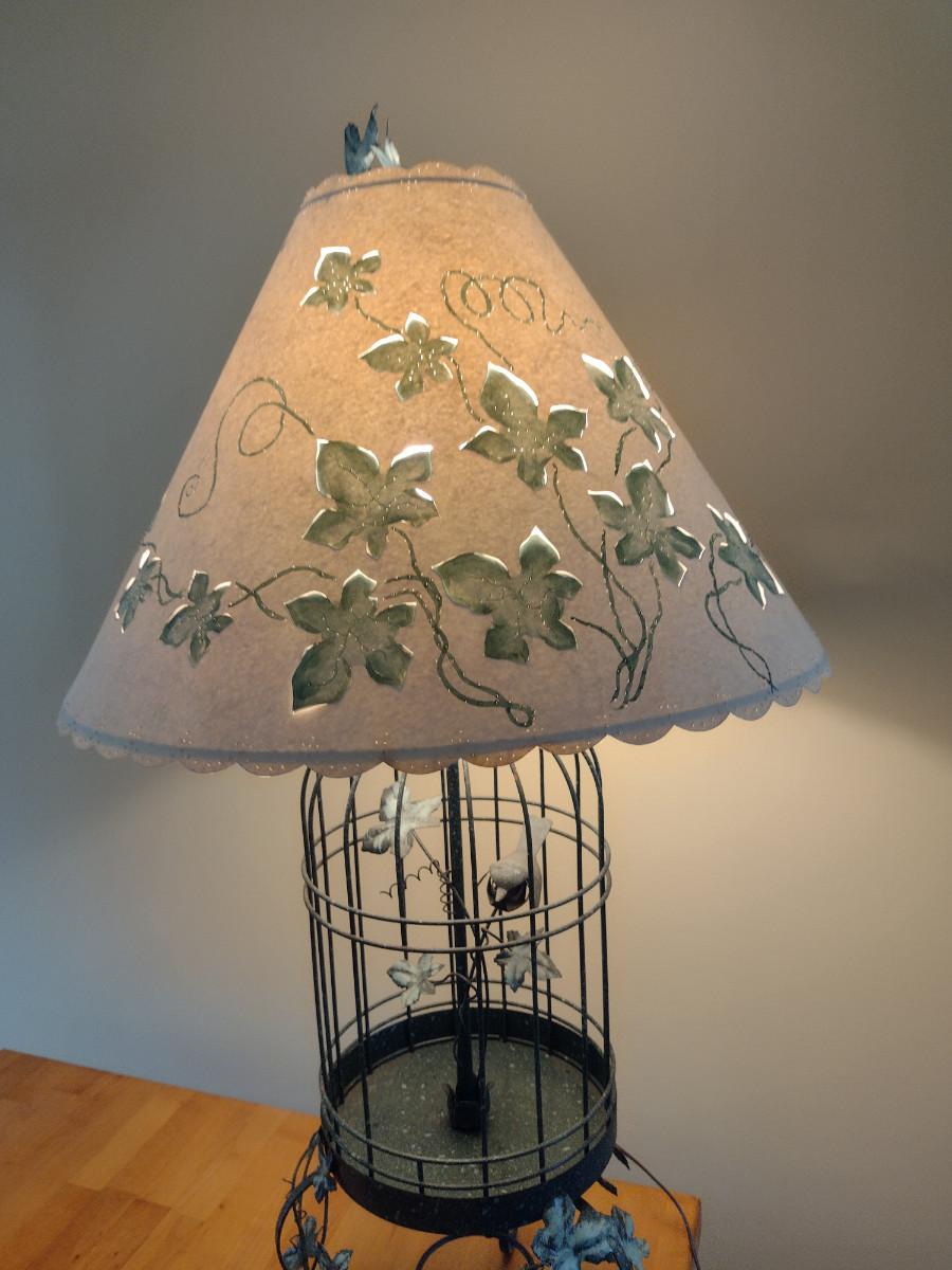 Metal Bird Cage Design Lamp with Pierced Ivy Theme Paper Shade- Approx 37" Tall