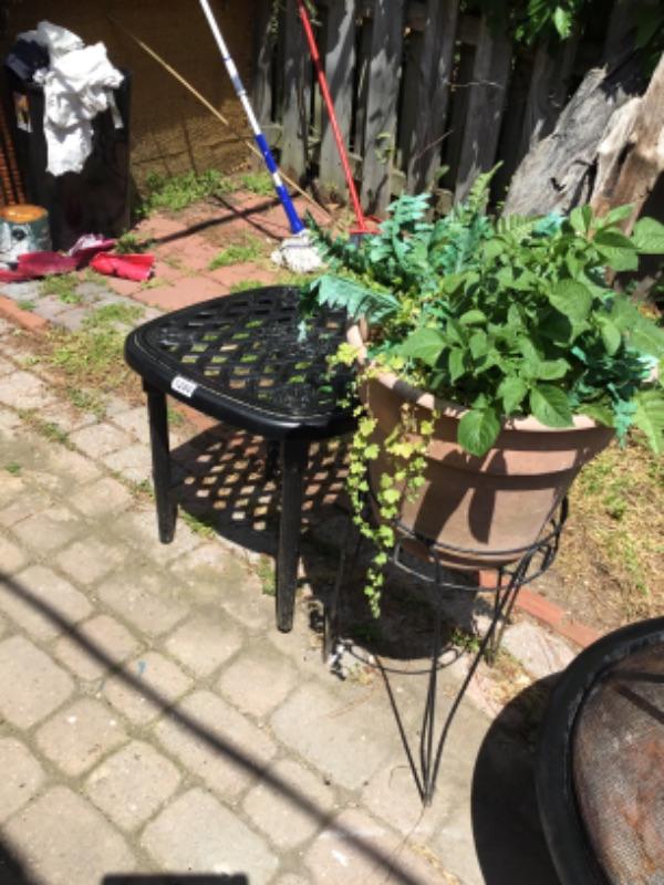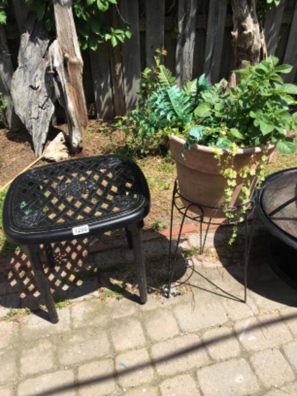 Metal black table, metal black plant stand with artificial greenery lot 1280