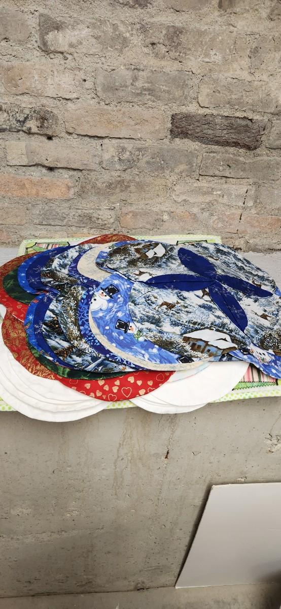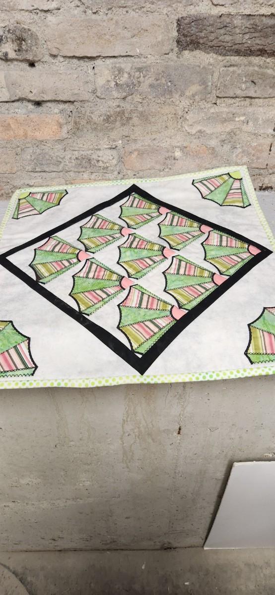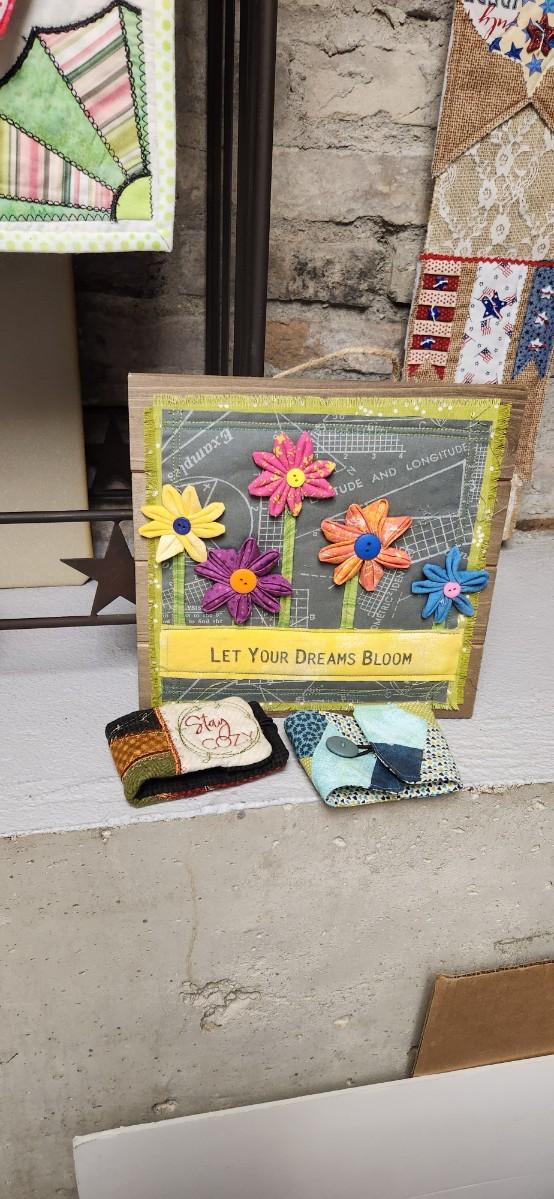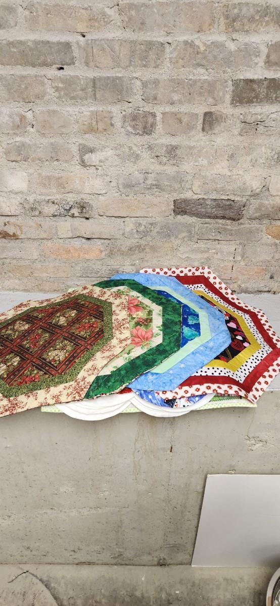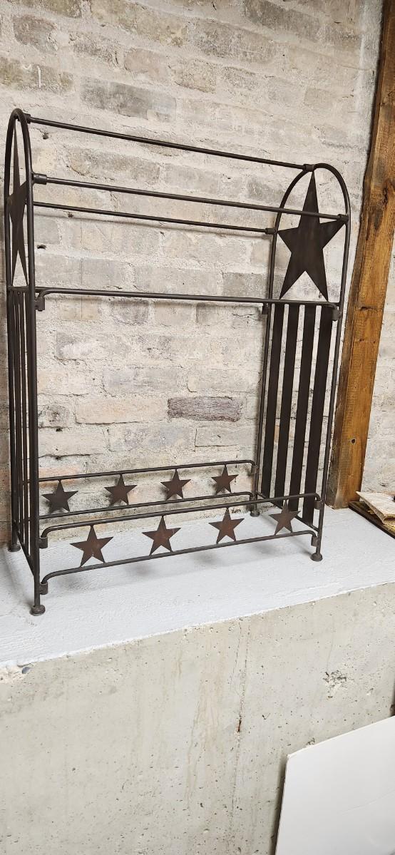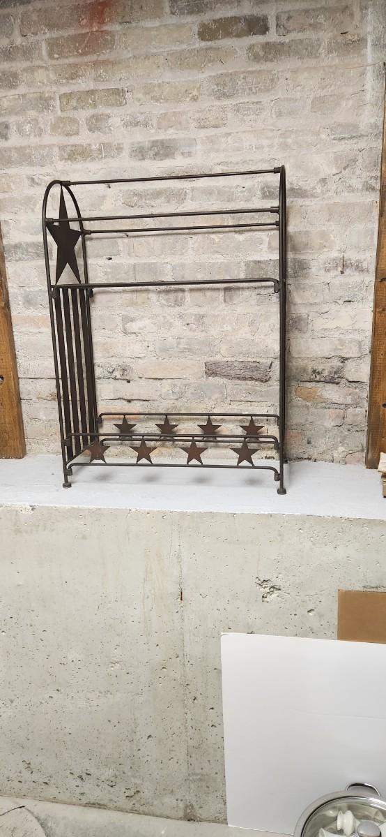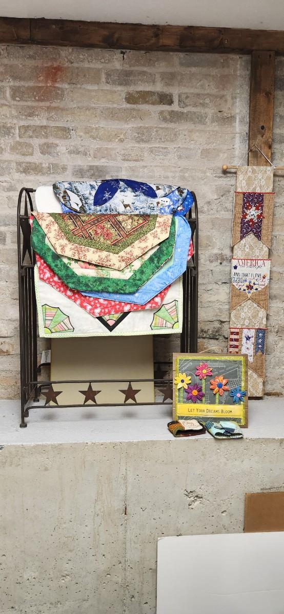 Neat metal blanket rack that comes apart for easy storage and a whole lot of quilted table pieces, cup holders, decor