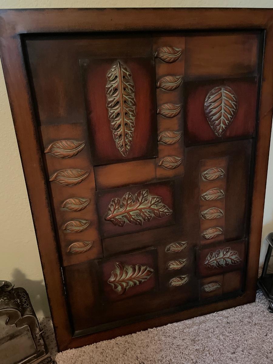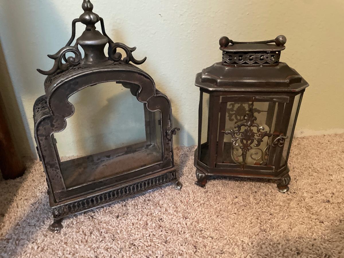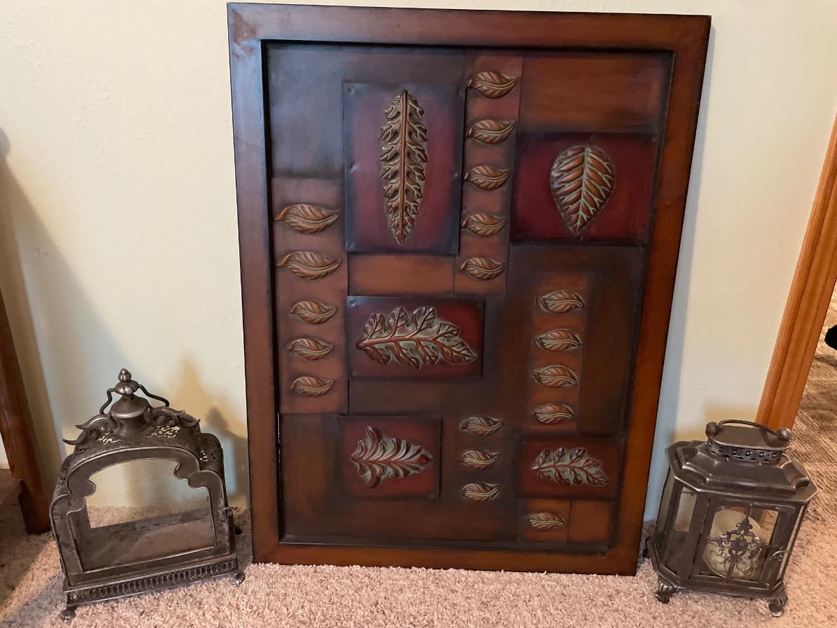 Metal candle holders and leaf decor