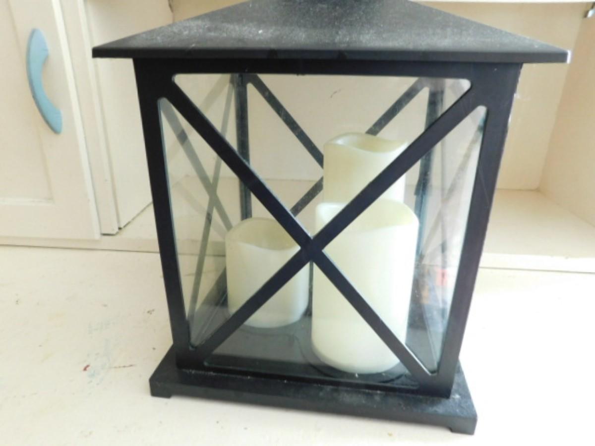 Metal Candle Lantern with Three Flickering Light Candles